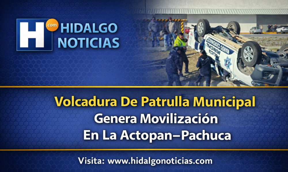 San Agustín Tlaxiaca, Hidalgo, 12 de febrero de 2026.— La mañana de este jueves se registró la volcadura de una patrulla de la Policía Municipal de...