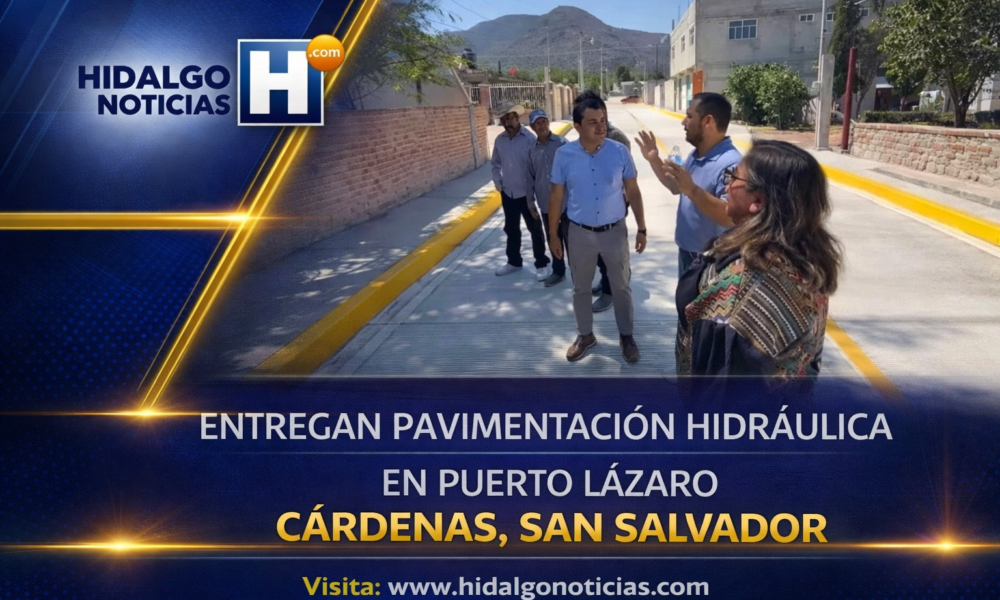 Entregan pavimentación hidráulica en Puerto Lázaro Cárdenas, San Salvador, para mejorar la movilidad y calidad de vida de la población.
