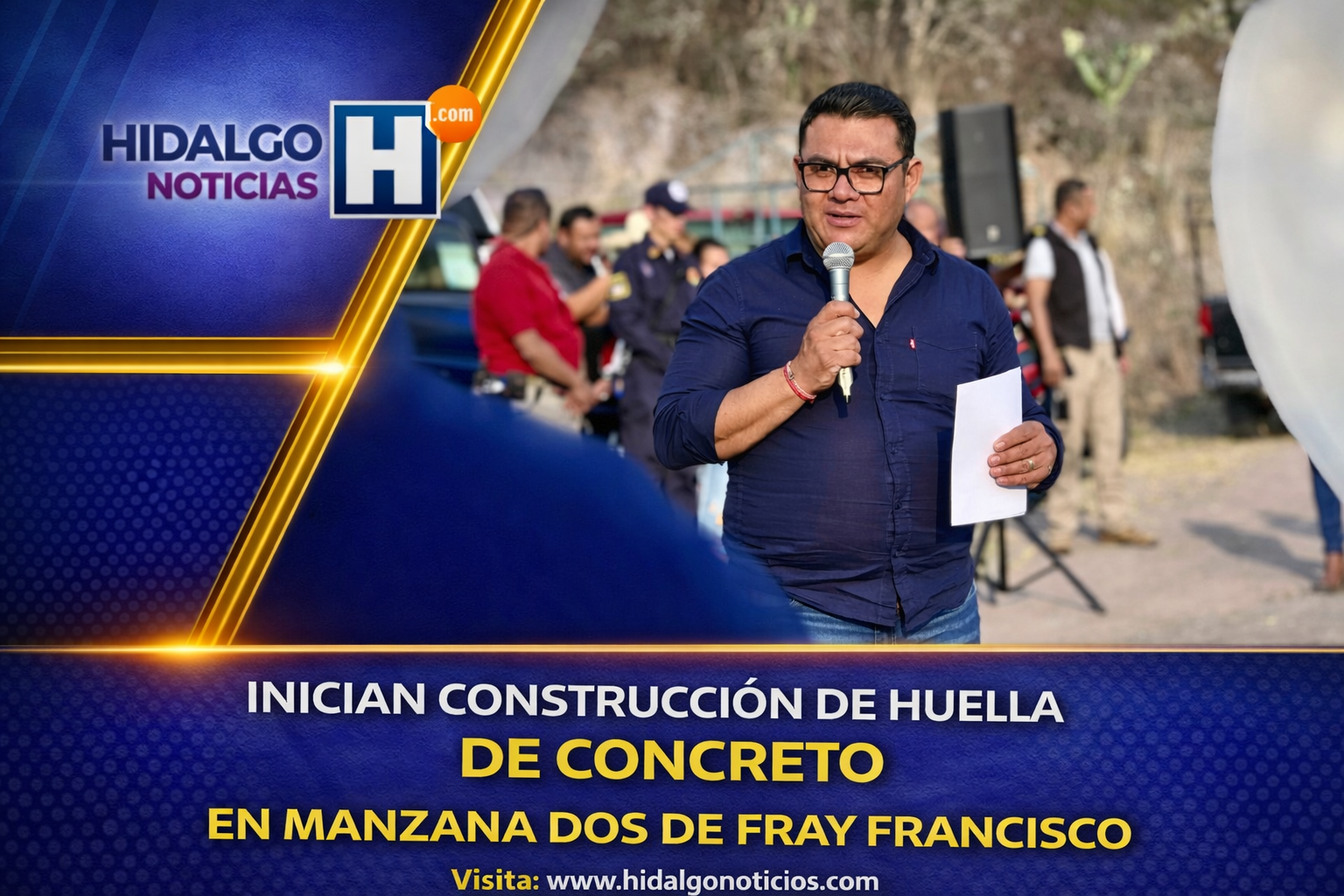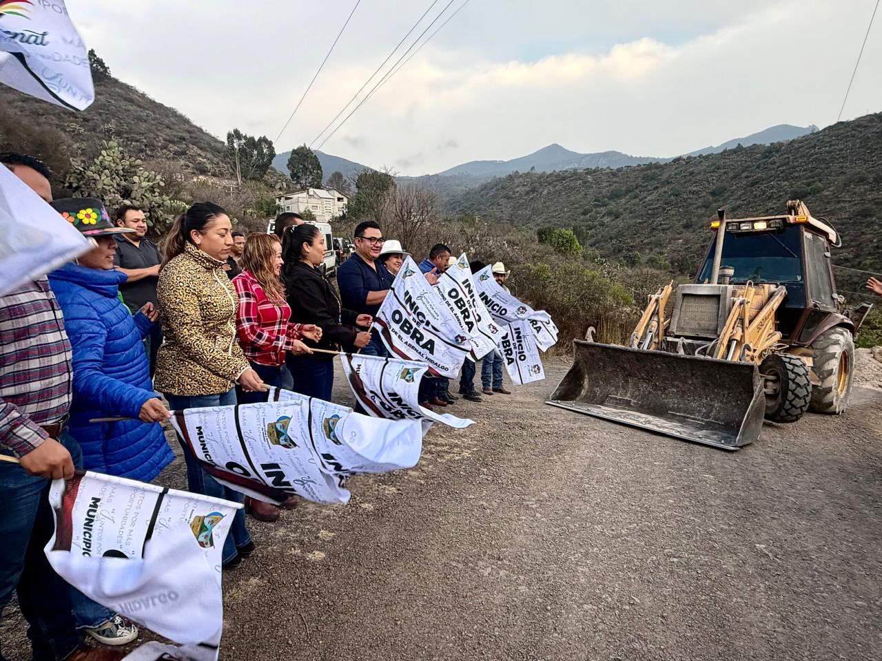 El Arenal, Hidalgo, 9 de marzo de 2026. El presidente municipal Jensen Oropeza dio el banderazo de inicio a la construcción de la huella de concreto hidráulico en el acceso principal de la manzana número 2, en la localidad de Fray Francisco, obra que responde a un compromiso previamente asumido con la población.