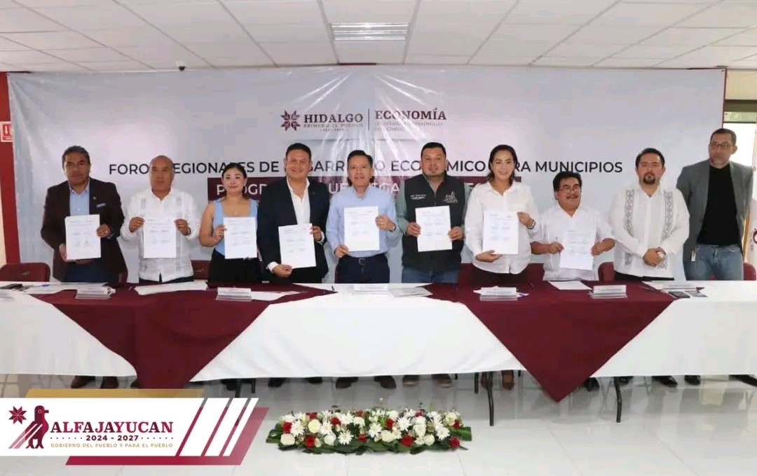 Alfajayucan participó en foros regionales donde firmó convenios con municipios de la Sierra Gorda y Valle del Mezquital para impulsar el desarrollo económico.
