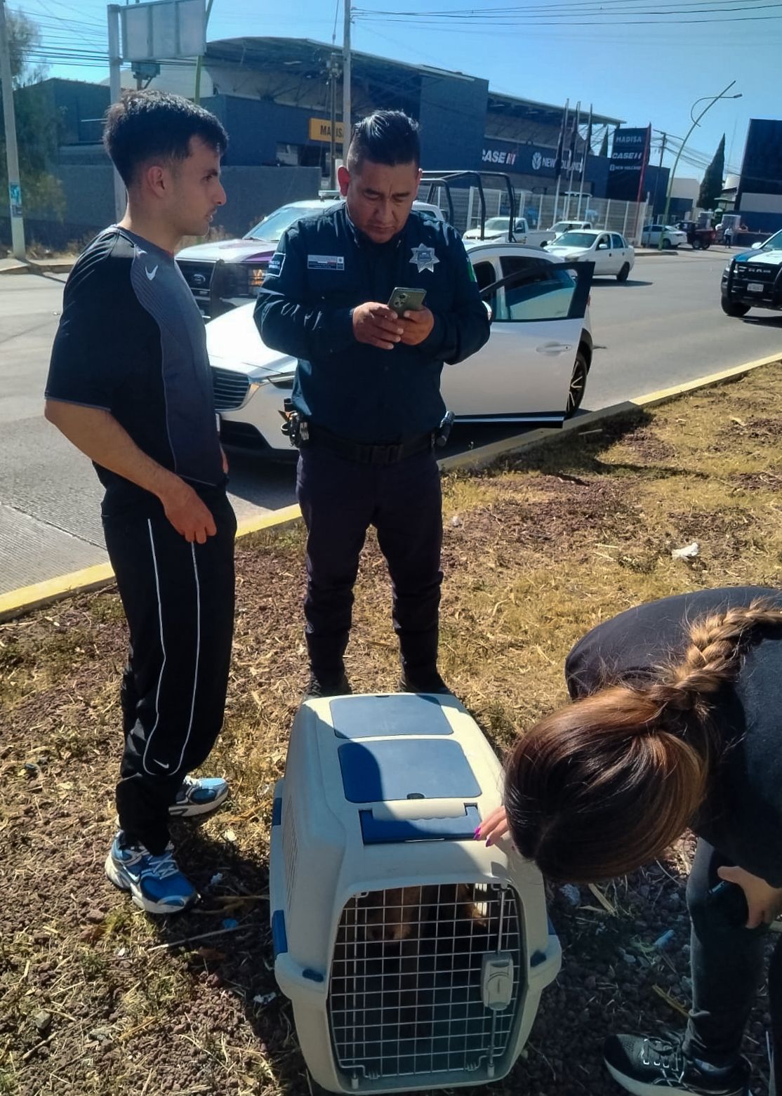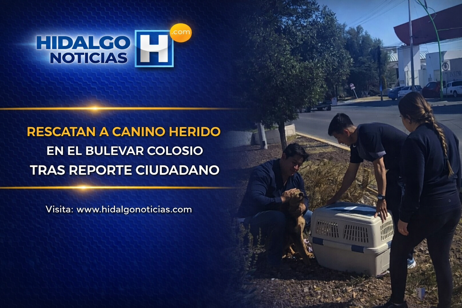 24 De Febrero De 2026, Pachuca De Soto, Hidalgo. La intervención inmediata de autoridades municipales permitió el rescate de un canino que se encontraba herido y en situación de riesgo sobre el camellón del bulevar Colosio, una de las vialidades con mayor circulación vehicular en la capital.