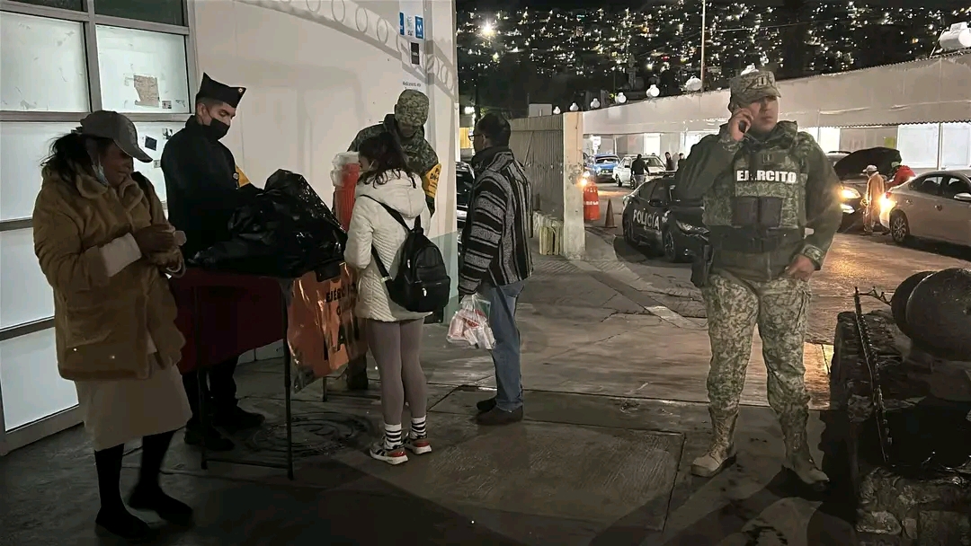 El operativo se desarrolló en coordinación con la Secretaría de la Defensa Nacional, cuyos elementos proporcionaron bebidas calientes y pan, reforzando la asistencia directa y brindando acompañamiento a quienes pasan la noche en el exterior del hospital.