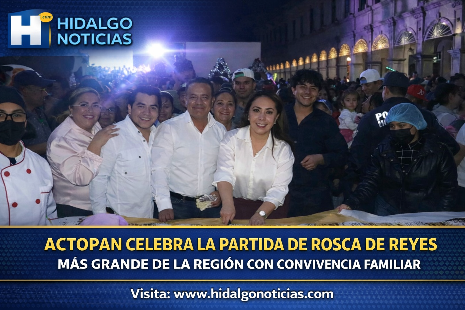 9 de enero de 2026, Actopan, Hidalgo. La presidenta municipal Imelda Cuéllar Cano encabezó, junto con habitantes del municipio, la realización de la tradicional partida de Rosca de Reyes, considerada una de las más representativas de la región, en una jornada marcada por la convivencia, la participación ciudadana y el fortalecimiento del tejido social.
