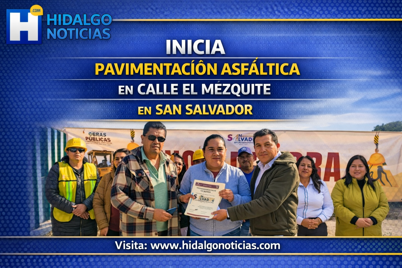 Enero de 2026, San Salvador, Hidalgo. Autoridades municipales dieron el banderazo de arranque a la obra de pavimentación asfáltica en la calle El Mezquite, un proyecto de infraestructura vial que beneficiará de manera directa a las familias de la localidad, al mejorar las condiciones de tránsito, seguridad y conectividad urbana.