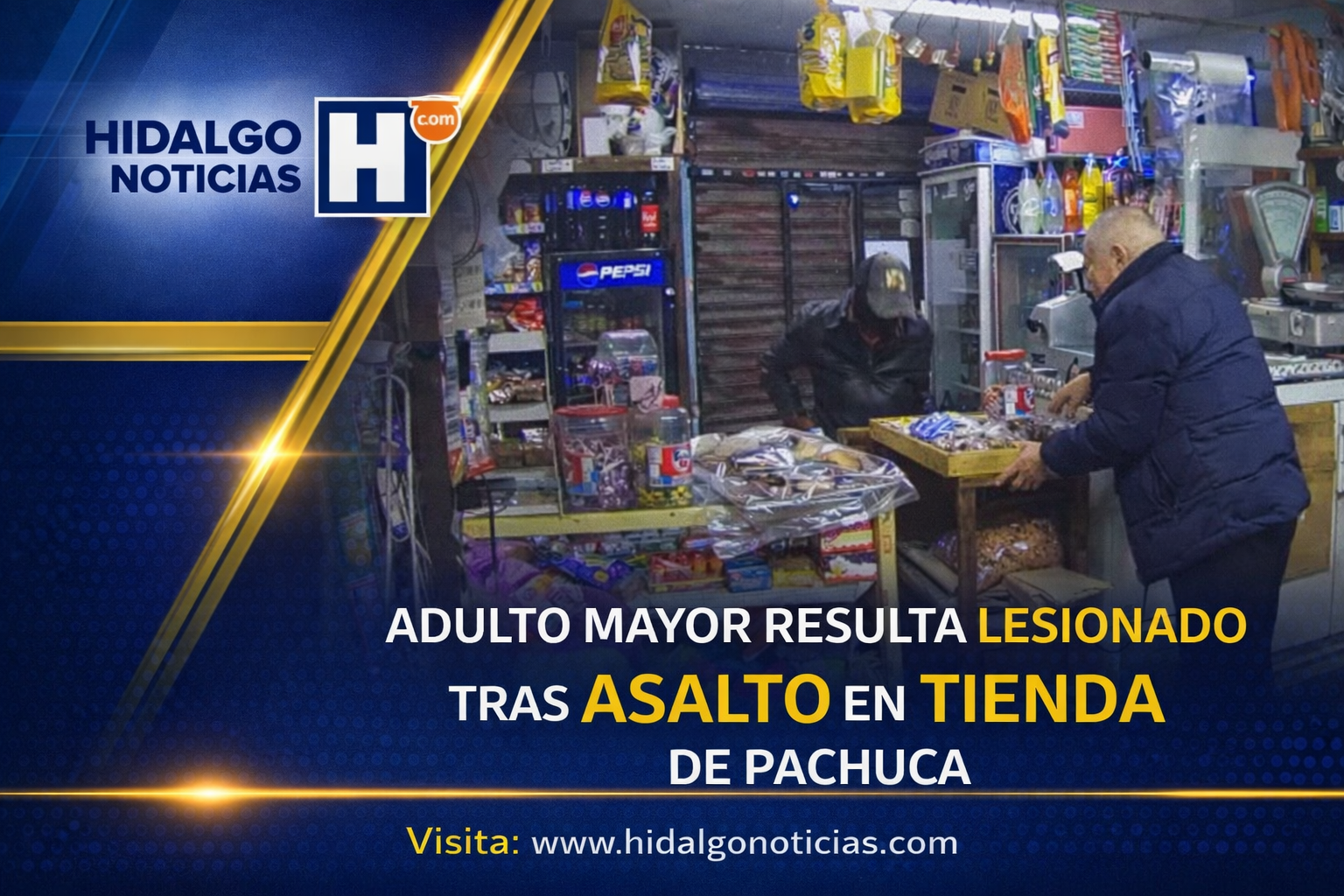 Pachuca, Hidalgo.— Un adulto mayor resultó lesionado luego de un asalto ocurrido en un establecimiento ubicado frente a la mina del barrio de San Juan, lo que generó movilización de cuerpos de seguridad en la zona.