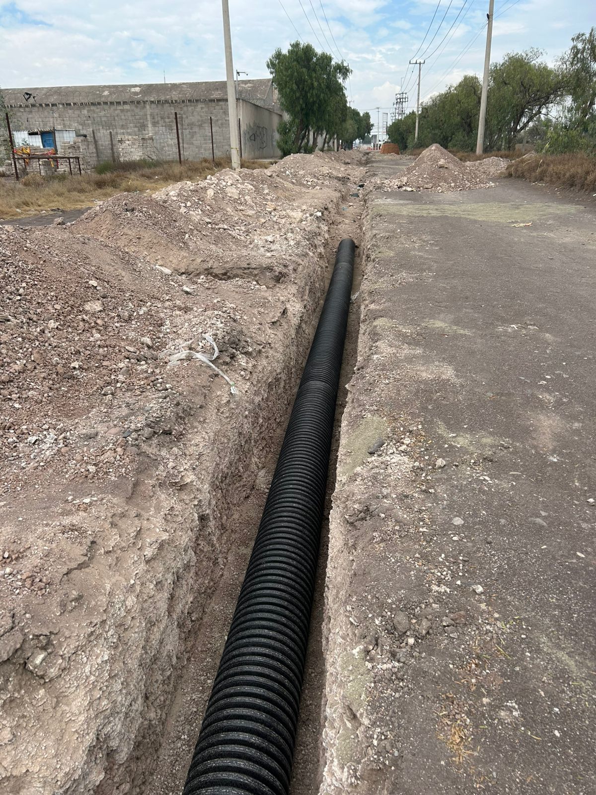 En materia de drenaje, se instalaron sistemas con tubería de polietileno corrugado, así como pozos de visita y descargas sanitarias domiciliarias, fortaleciendo la infraestructura básica de la zona.
