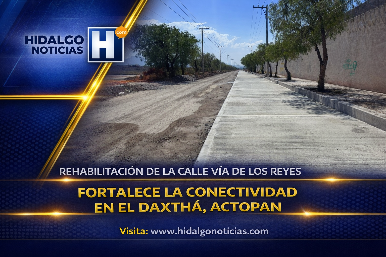 Actopan, Hidalgo.— La Secretaría de Infraestructura Pública y Desarrollo Urbano Sostenible (SIPDUS) concluyó la rehabilitación integral de la calle Vía de los Reyes, ubicada en la localidad de El Daxthá, una obra clave para mejorar la conectividad y las condiciones de tránsito en el municipio.
