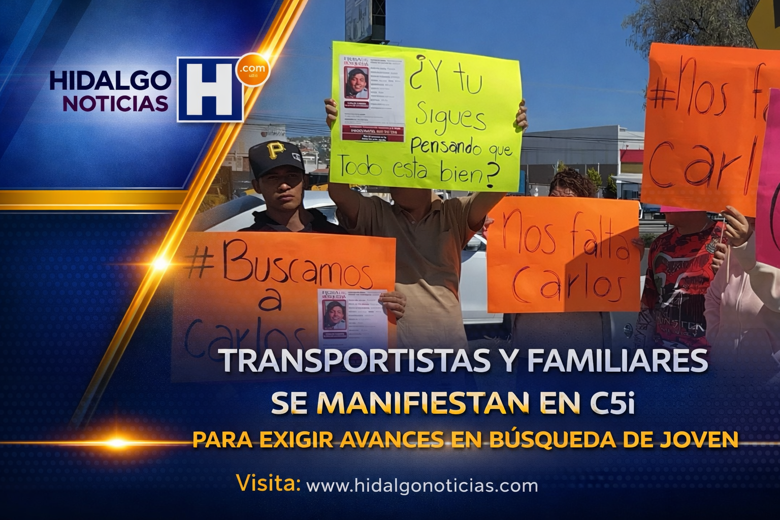 Familiares y transportistas se manifestaron en el C5i Hidalgo para exigir avances en la búsqueda de un joven desaparecido desde hace dos semanas.