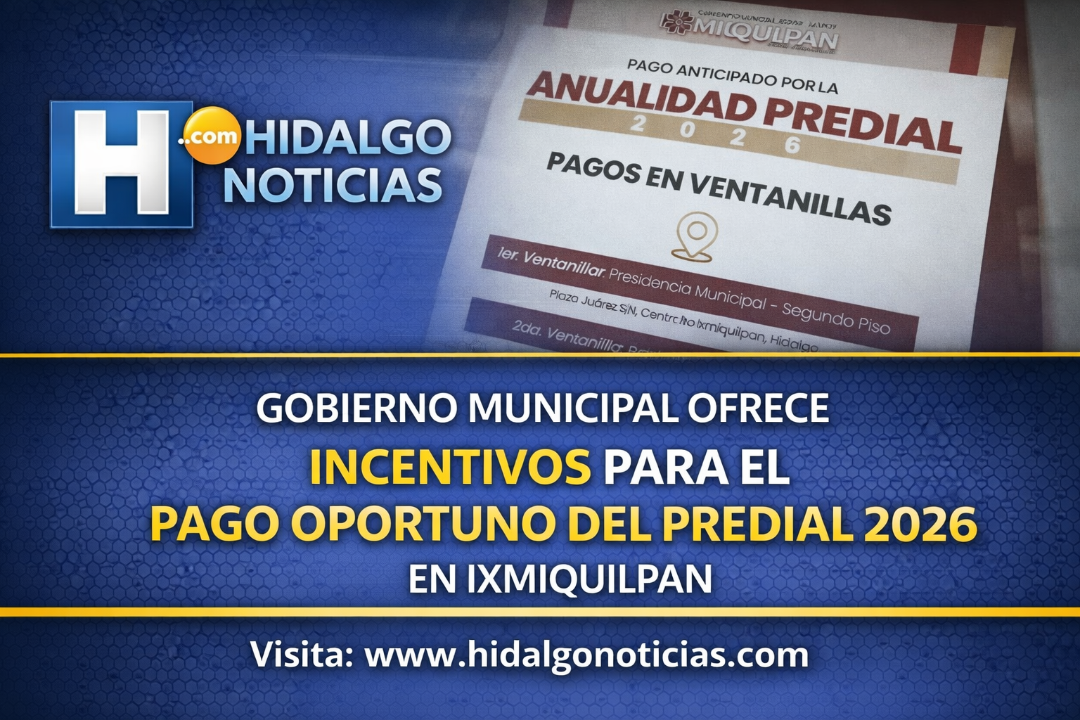 Enero de 2026, Ixmiquilpan, Hidalgo. El Gobierno Municipal informó el arranque del periodo de recaudación del impuesto predial correspondiente al ejercicio 2026, el cual inició este lunes 5 de enero, con un esquema de incentivos que busca facilitar el cumplimiento oportuno de las obligaciones fiscales y fortalecer las finanzas públicas del municipio.