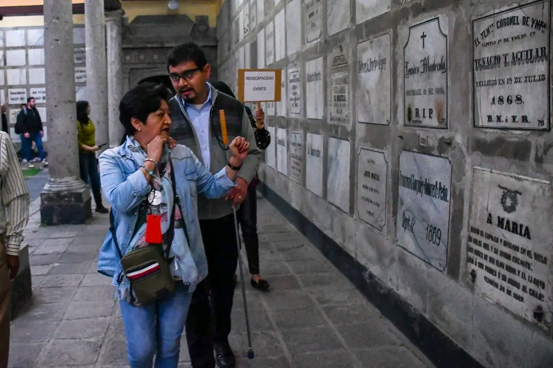 El recorrido inició en el Museo Panteón de San Fernando, donde se priorizó la accesibilidad y la interpretación cultural. Posteriormente, el grupo visitó el Museo Nacional de San Carlos, donde participaron en dinámicas sensoriales vinculadas con la exposición “El beso de la muerte”. Mediante objetos, texturas y esencias como copal, flores y cempasúchil, las y los asistentes pudieron conectar con distintas épocas y contextos históricos a través de los sentidos.