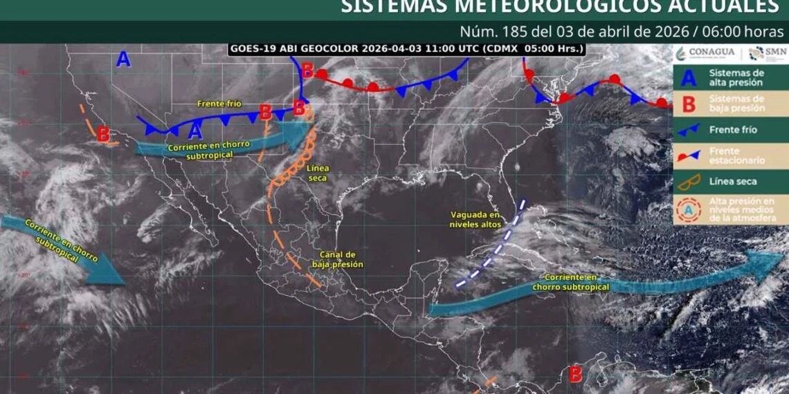 Este jueves 2 de abril, el país enfrentará condiciones climáticas contrastantes, con lluvias intensas en algunas regiones y altas temperaturas en otras, derivado de la interacción de distintos sistemas atmosféricos.
