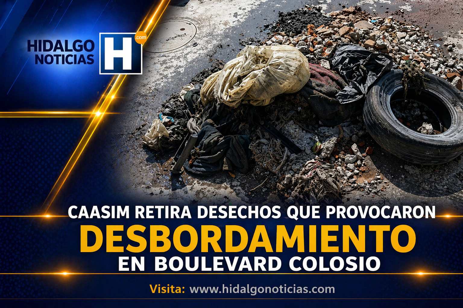 Pachuca de Soto, Hidalgo.— Personal de la Comisión de Agua y Alcantarillado de Sistemas Intermunicipales (Caasim) atendió un reporte por desbordamiento de aguas residuales en el bulevar Colosio, a la altura del Hospital Español, donde durante las labores de limpieza se localizaron objetos que obstruían el flujo del sistema.