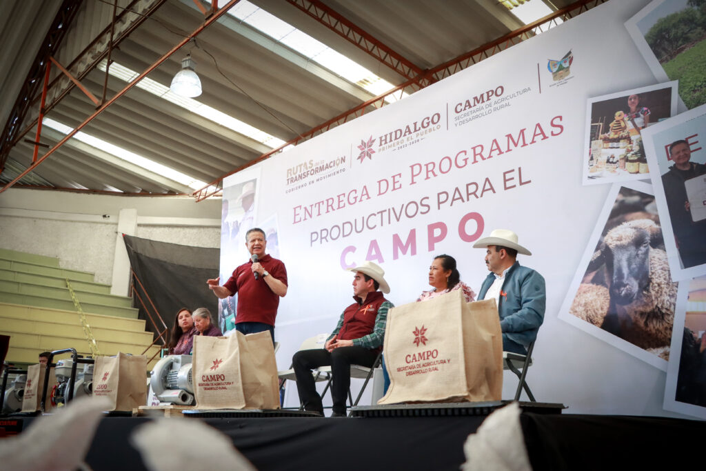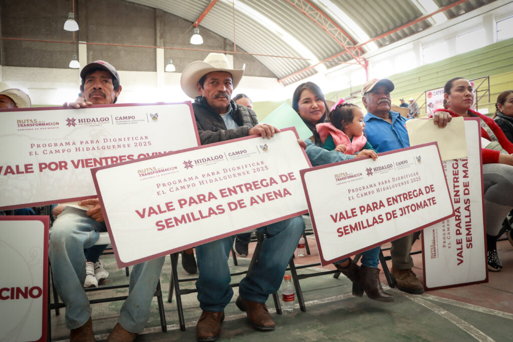 El secretario de Agricultura y Desarrollo Rural, Napoleón González Pérez, explicó que las entregas incluyen semillas certificadas de maíz, avena y jitomate; vientres ovinos y porcinos; herramientas, módulos de sombra, huertos familiares, equipos de ordeña, rollos de alambre, picadoras, así como equipamiento agrícola, avícola y acuícola. Todo ello, señaló, se distribuye de manera directa a quienes trabajan el campo hidalguense.
