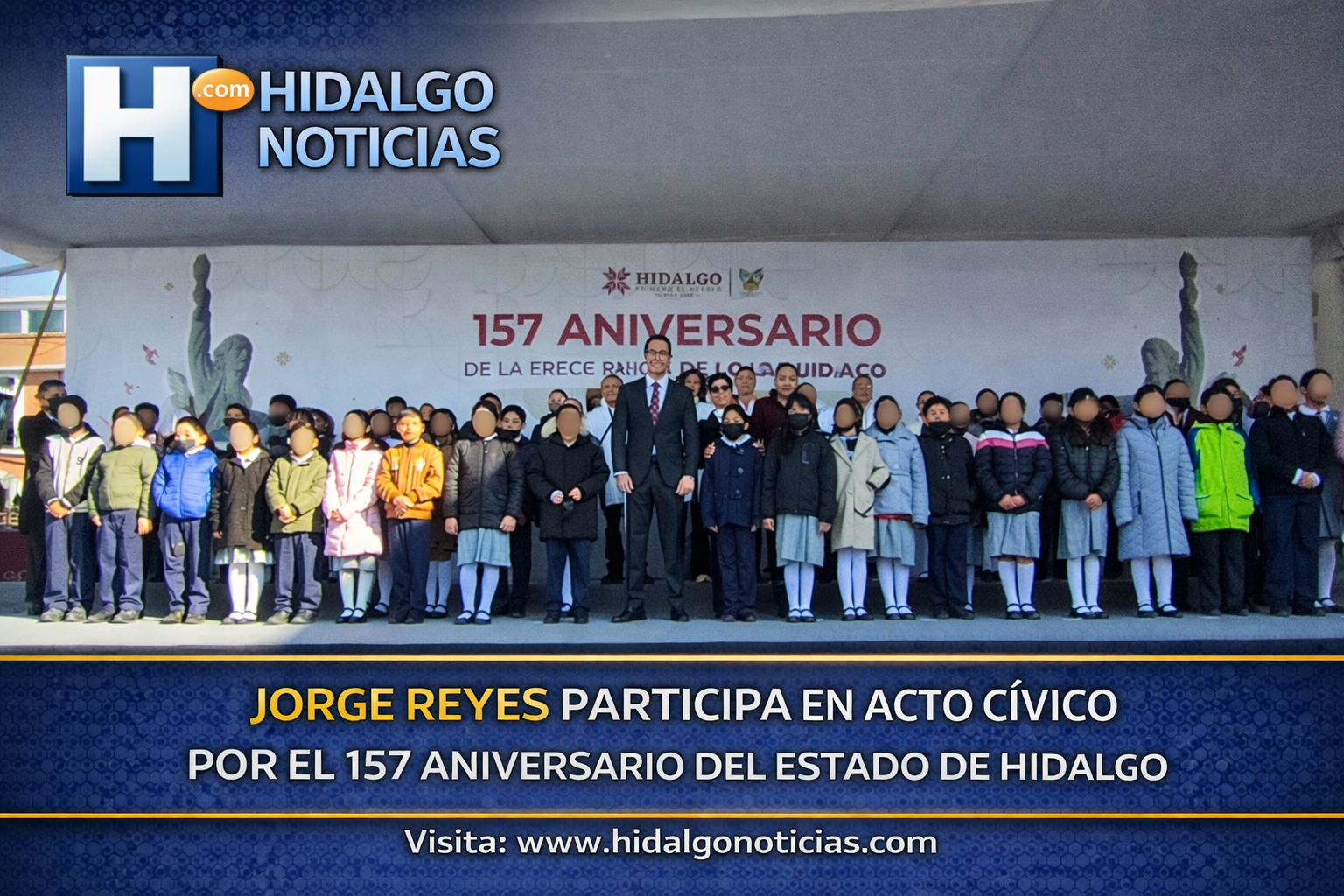 Enero de 2026, Pachuca de Soto, Hidalgo. El presidente municipal Jorge Reyes asistió al acto cívico conmemorativo por el 157 aniversario de la Erección del Estado de Hidalgo, ceremonia que fue encabezada por el gobernador Julio Menchaca como parte de las actividades oficiales destinadas a honrar el origen, la historia y la identidad de la entidad.