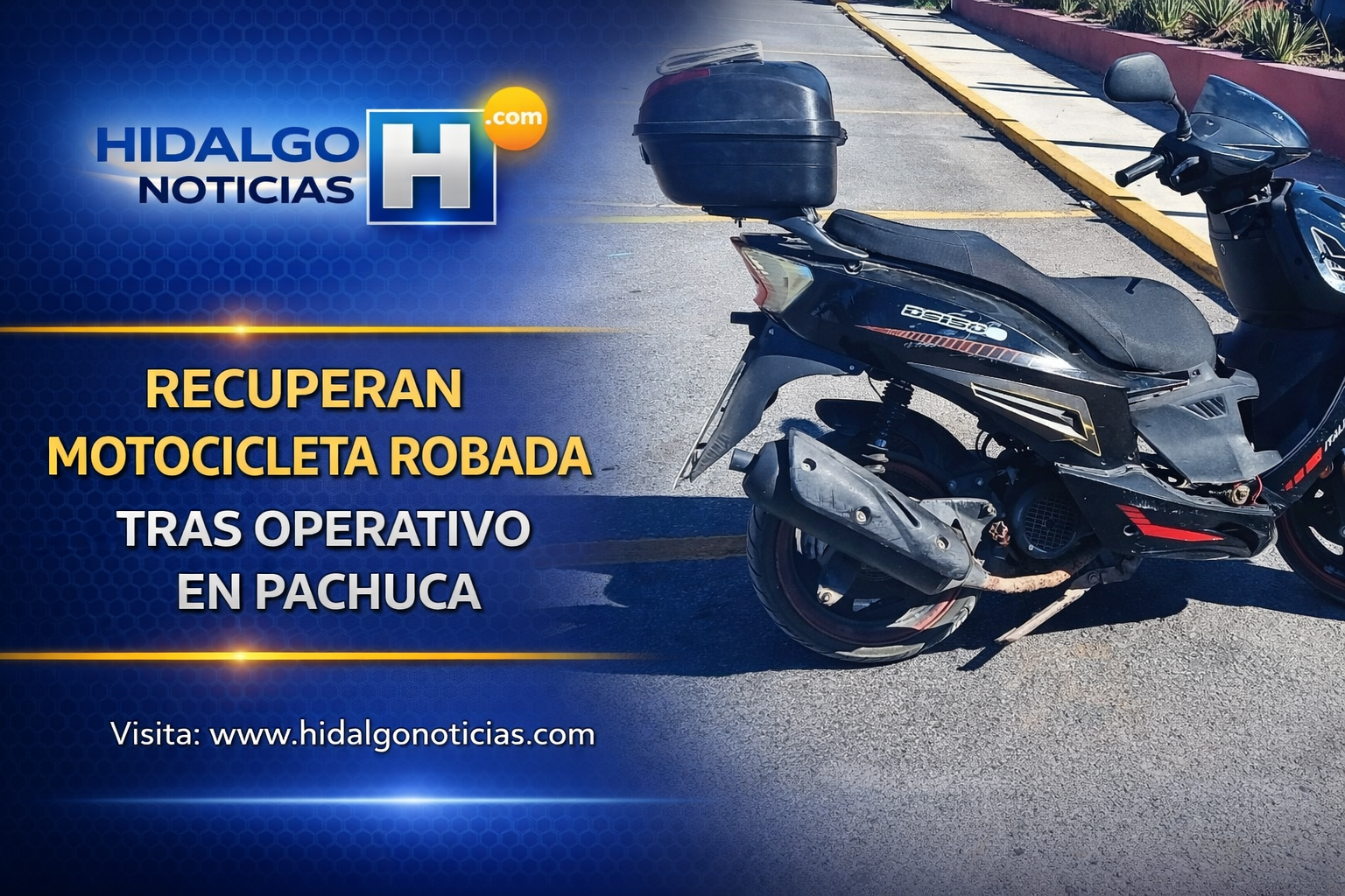 20 de febrero de 2026, Pachuca, Hidalgo. Elementos de la Secretaría de Seguridad Pública, Tránsito y Vialidad de Pachuca recuperaron una motocicleta marca Italika que había sido reportada como robada en la colonia Carlos Rovirosa, tras activar un operativo de búsqueda derivado de un aviso recibido en la Central de Radio C4.