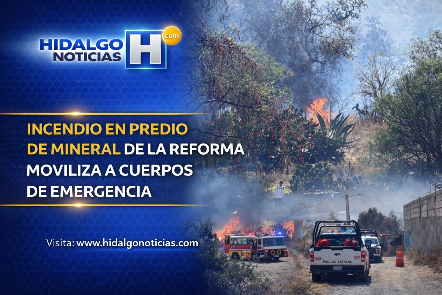 19 De Febrero De 2026, Mineral De La Reforma, Hidalgo. — Un incendio se registró la tarde de este jueves en un predio ubicado sobre la calle Prolongación Benito Juárez, a un costado del panteón municipal, lo que generó la intervención inmediata de corporaciones de auxilio y seguridad para evitar mayores afectaciones.