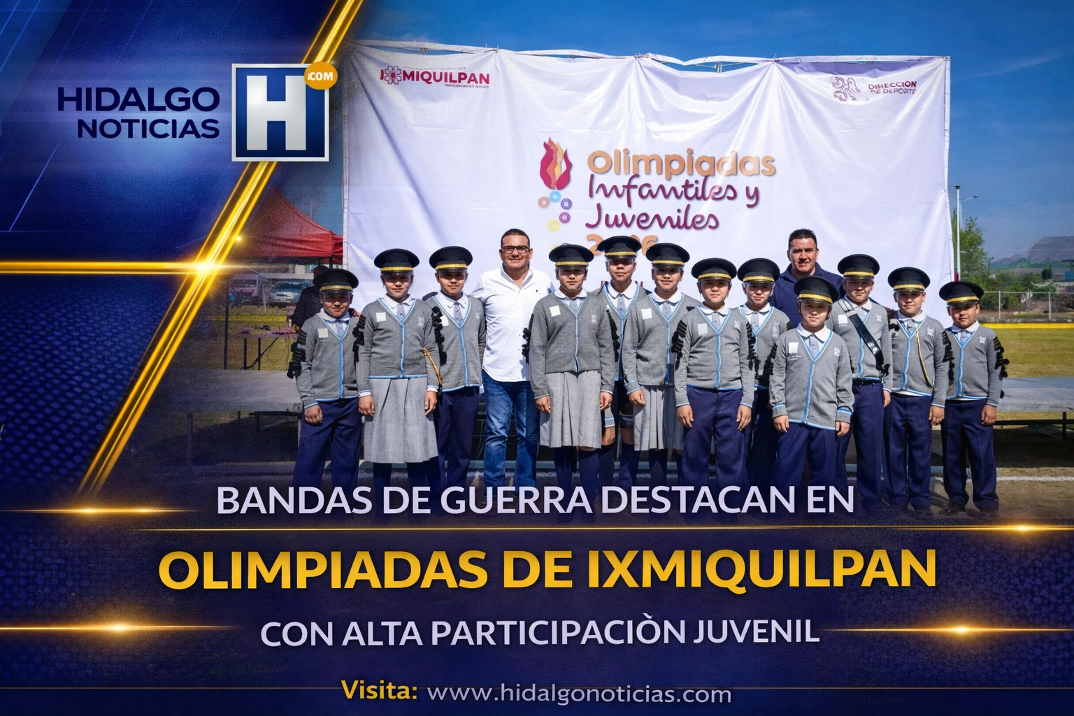 Ixmiquilpan, Hidalgo.— Como parte de las actividades de las Olimpiadas en el municipio, se llevó a cabo el concurso de Bandas de Guerra, donde participaron niñas, niños y jóvenes, quienes demostraron disciplina, coordinación y preparación en cada una de sus presentaciones.