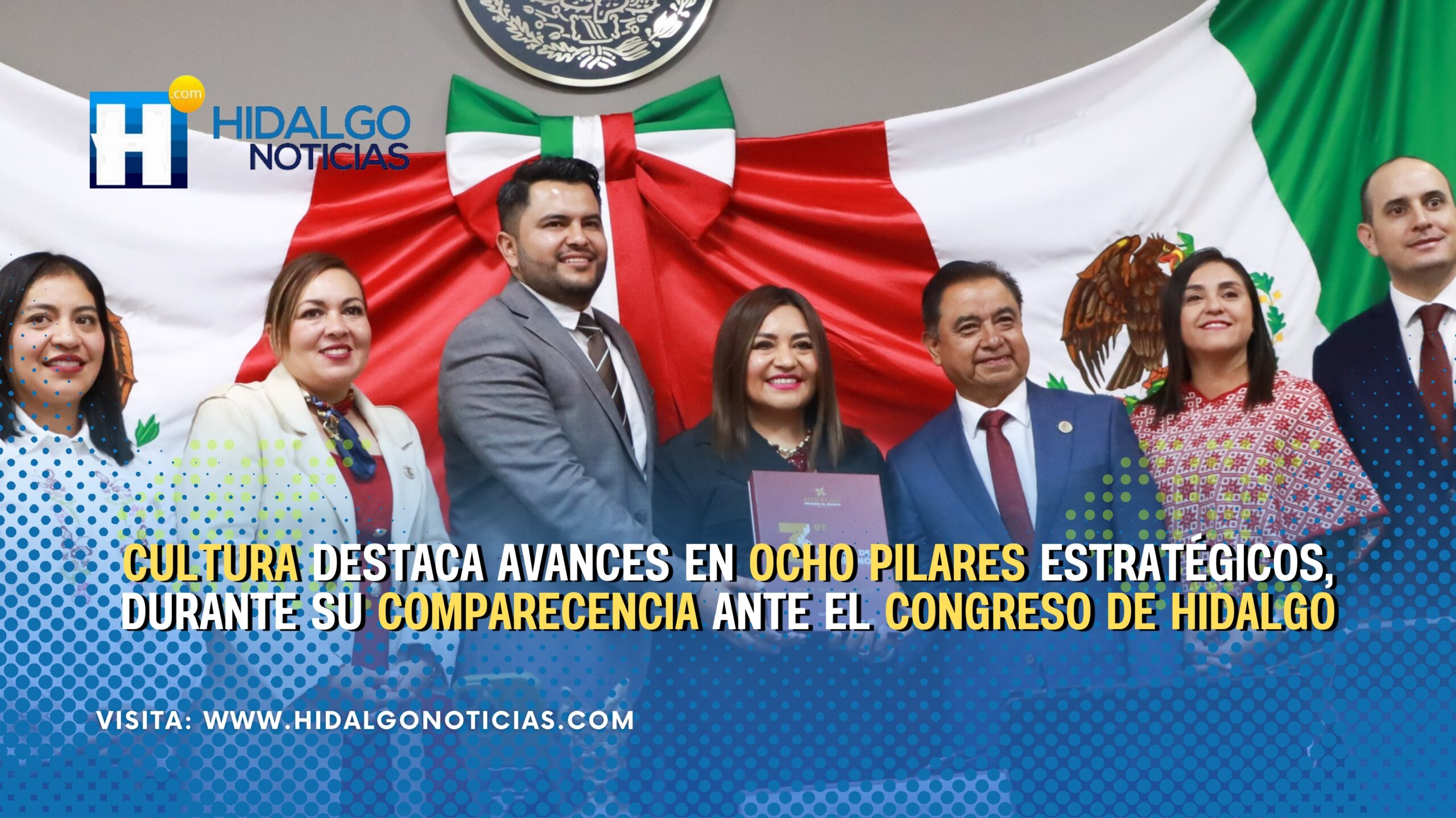 Pachuca de Soto, Hidalgo, 21 de noviembre de 2025.- En la Sala Permanente de la Torre Legislativa del Congreso del Estado, la secretaria de Cultura, Neyda Naranjo Baltazar, presentó el informe correspondiente al tercer año de la administración que encabeza Julio Menchaca Salazar, en el que desglosó los avances de la política cultural a partir de ocho pilares estratégicos que articulan preservación del patrimonio, infraestructura, formación artística y apoyos directos a la comunidad creadora.