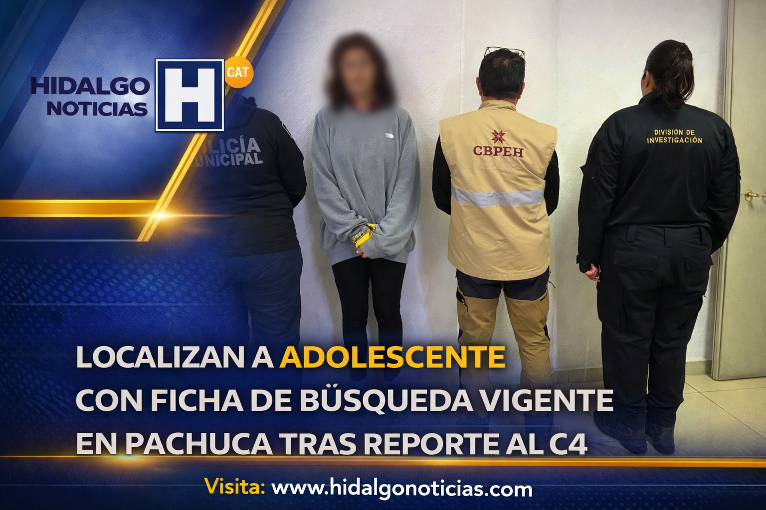 25 De Marzo De 2026 | Pachuca, Hidalgo.— Elementos de la Secretaría de Seguridad Pública, Tránsito y Vialidad Municipal de Pachuca lograron la localización de una adolescente que contaba con ficha de búsqueda vigente, tras la atención de un reporte recibido a través del sistema C4.