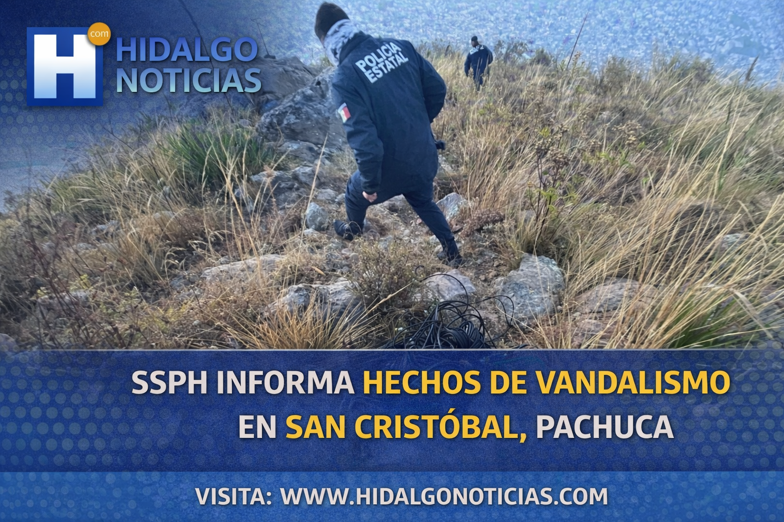 Pachuca, Hidalgo; madrugada del sábado. Derivado de los acontecimientos registrados en la colonia San Cristóbal, en la capital del estado, la Secretaría de Seguridad Pública de Hidalgo informó que durante las primeras horas del día se detectaron actos de vandalismo en una caseta donde se encuentra instalada una antena de la Red de Radiocomunicación que da servicio operativo a la Policía Estatal, Policía Municipal y Policía Bancaria.