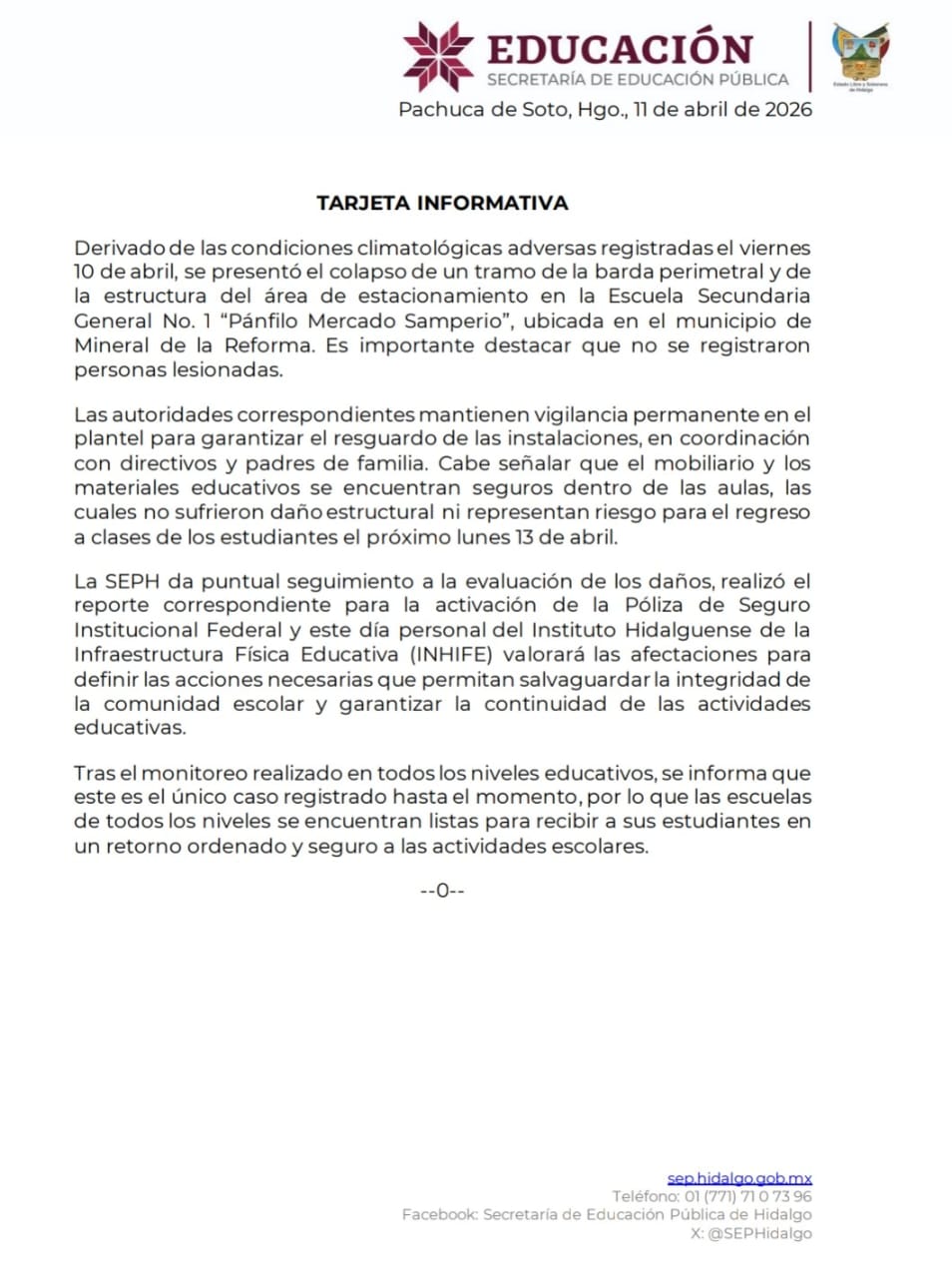 La dependencia pidió a la población mantener la calma y actuar con paciencia, ya que las emergencias continúan siendo atendidas en territorio conforme se presentan los reportes derivados de las lluvias.
