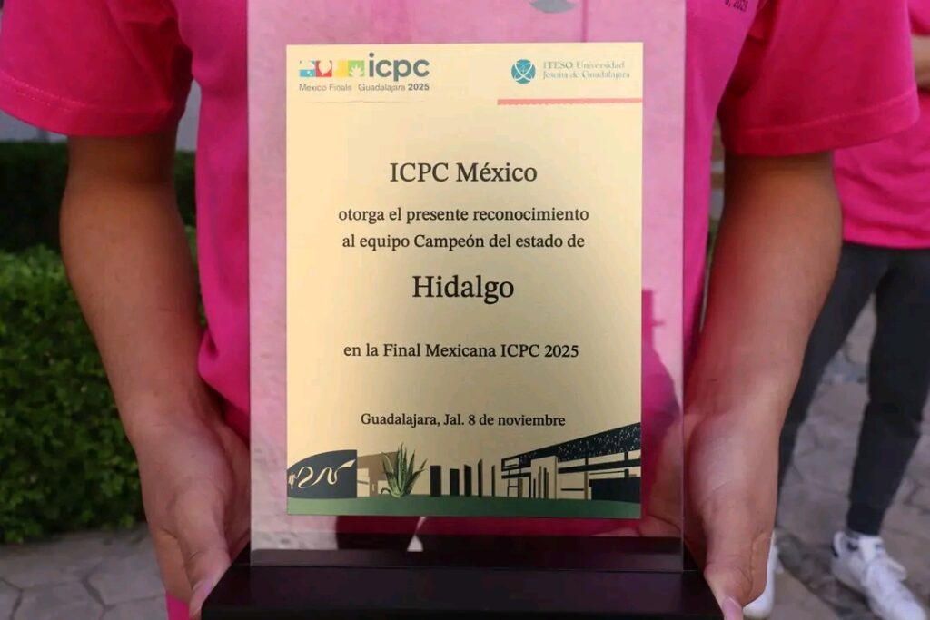 24 de noviembre de 2025, Pachuca, Hidalgo.— Un grupo de alumnos de la Licenciatura en Ciencias Computacionales del Instituto de Ciencias Básicas e Ingeniería de la Universidad Autónoma del Estado de Hidalgo fue reconocido a nivel nacional por su destacado desempeño en la Final del Gran Premio de México 2025 del International Collegiate Programming Contest (ICPC), donde alcanzaron uno de los mejores resultados obtenidos por equipos universitarios de la entidad.