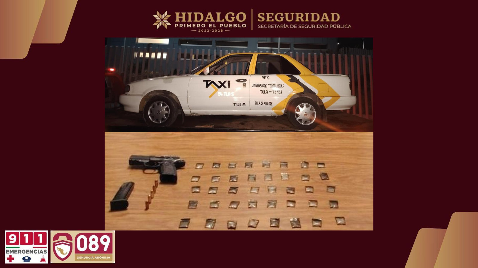 Las personas aseguradas, junto con los objetos localizados y la unidad en la que se trasladaban, fueron puestas a disposición de la autoridad competente para el desarrollo de las investigaciones.