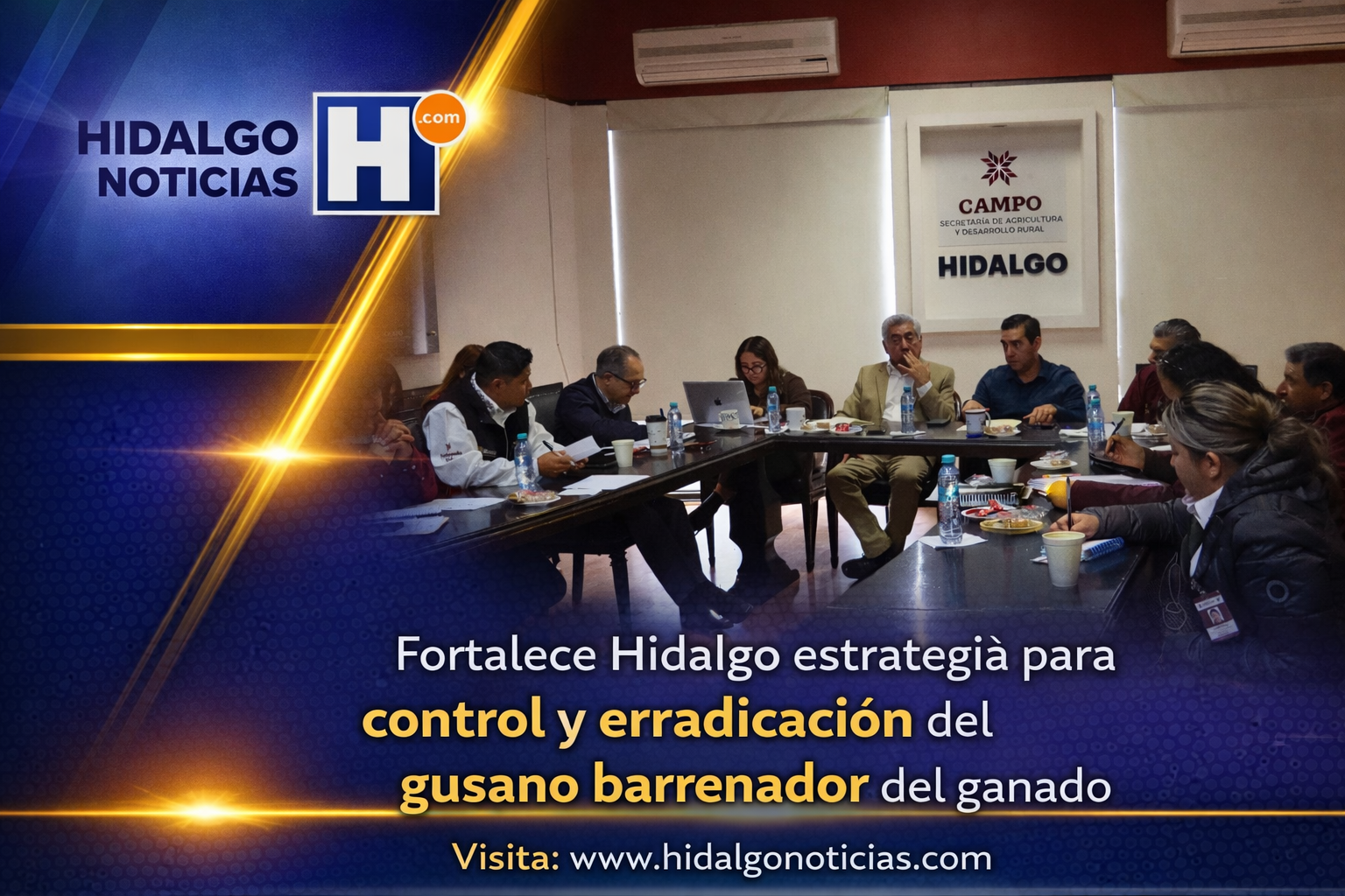 Hidalgo, marzo de 2026.— Con el objetivo de proteger la sanidad animal y salvaguardar el patrimonio de las familias productoras, autoridades estatales fortalecen la estrategia interinstitucional para la prevención, control y erradicación del Gusano Barrenador del Ganado, problemática que actualmente registra 67 casos activos en la entidad.