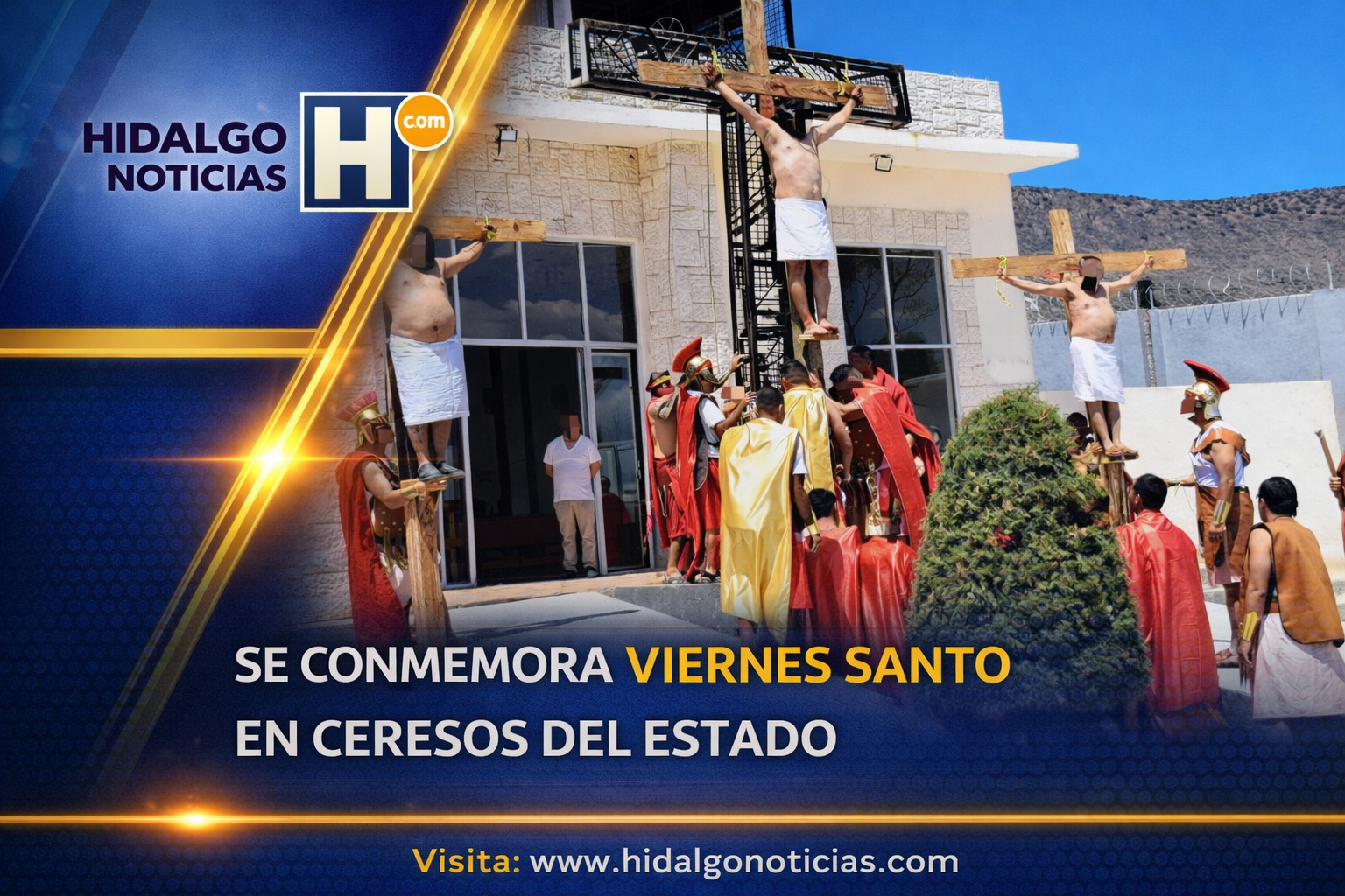 Pachuca, Hidalgo, abril de 2026.— Como parte de las actividades correspondientes a la Semana Santa 2026, personas privadas de la libertad en 12 Centros de Reinserción Social (Ceresos) del estado, así como en un Centro de Internamiento para Adolescentes, conmemoraron el Viernes Santo mediante la representación del viacrucis.