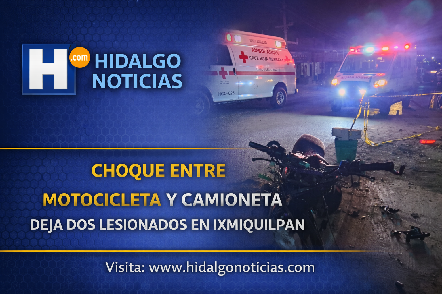 Ixmiquilpan, Hidalgo, 11 de febrero de 2026.— Un accidente vial ocurrido la noche de este miércoles sobre la avenida Hidalgo, en la comunidad de San Nicolás, dejó como saldo dos personas lesionadas y movilización inmediata de cuerpos de emergencia en la zona.