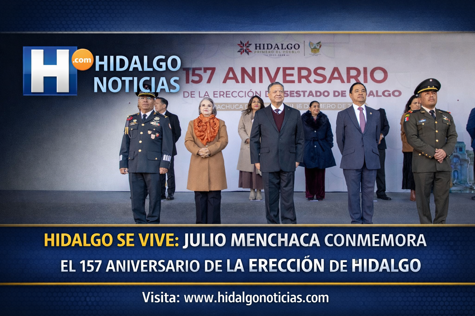 Enero de 2026, Pachuca de Soto, Hidalgo. El gobernador Julio Menchaca Salazar presidió la ceremonia oficial con motivo del 157 aniversario de la erección del Estado de Hidalgo, una fecha que permitió reafirmar el compromiso permanente de su administración con el bienestar social, el fortalecimiento de la seguridad y el impulso al desarrollo integral de las y los hidalguenses.