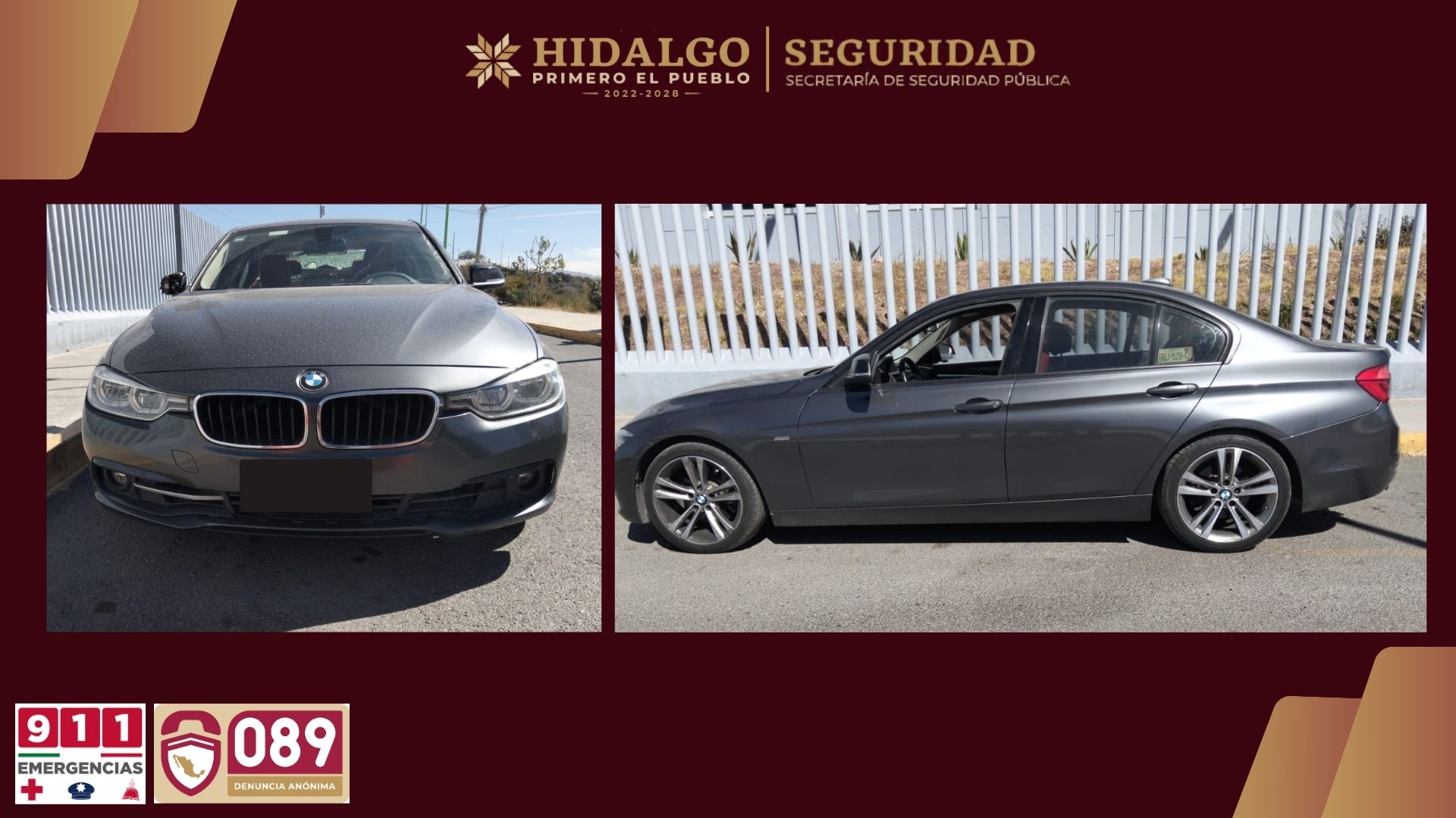 La acción se activó luego de una llamada al número de emergencias 911 que alertó sobre el robo de un automóvil BMW en la autopista México–Querétaro. Con base en el reporte, se implementó un protocolo de seguimiento apoyado en la red de videovigilancia del Centro de Control, Comando, Comunicaciones, Cómputo, Coordinación e Inteligencia (C5i), lo que permitió detectar la unidad circulando junto a una camioneta Ford sobre el bulevar Felipe Ángeles, en las inmediaciones de la colonia Prismas, en Pachuca.