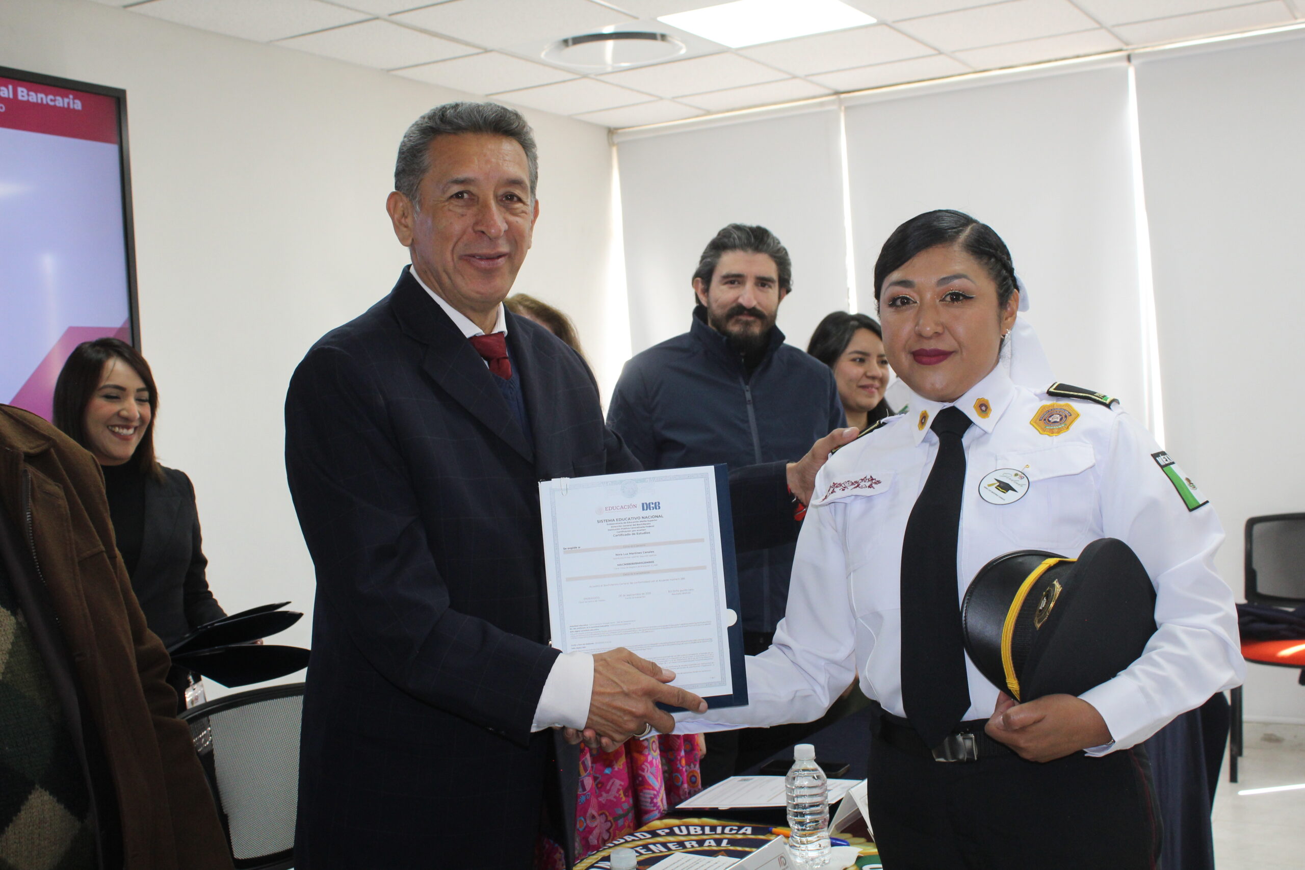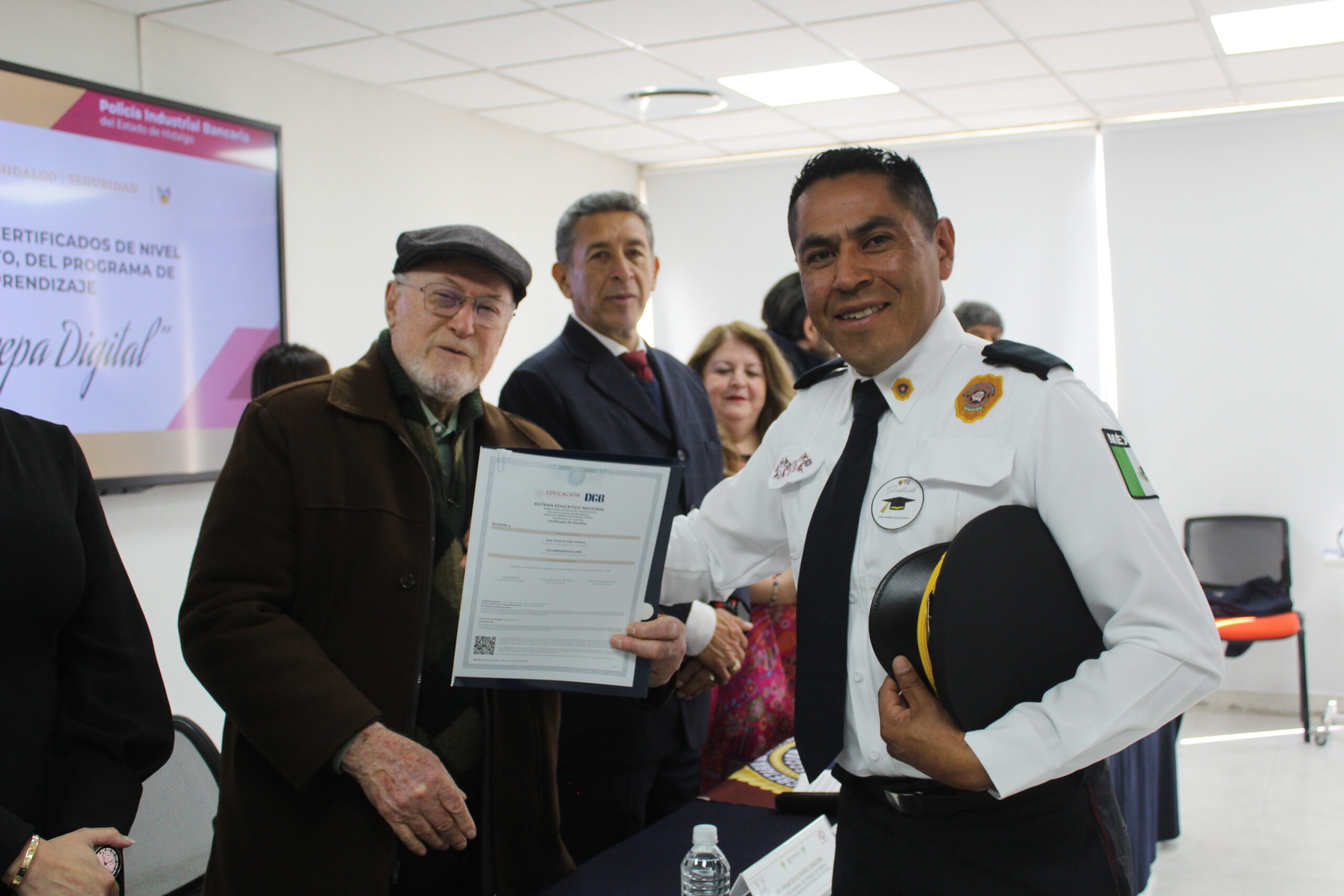 29 de enero de 2026, Hidalgo. — Un total de 43 certificados de nivel bachillerato fueron entregados a 28 integrantes de la Policía Industrial Bancaria del Estado de Hidalgo (PIBEH) y a 15 de sus familiares, quienes concluyeron satisfactoriamente sus estudios mediante el modelo educativo Mi Prepa Digital, fortaleciendo así la preparación académica del personal y su entorno familiar.