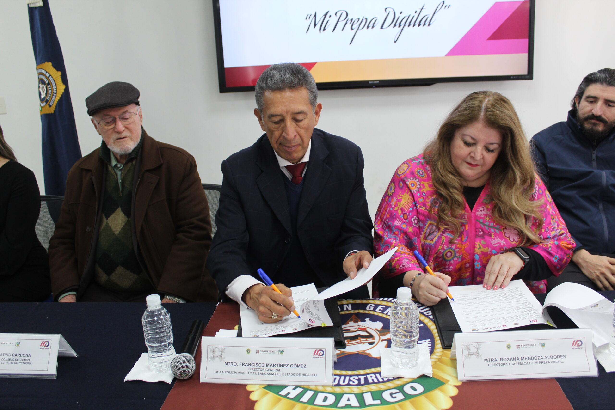 Como parte de la jornada, también se formalizó la renovación del convenio de colaboración entre la Policía Industrial Bancaria del Estado de Hidalgo y el programa Mi Prepa Digital, acuerdo que permitirá ampliar el acceso a estudios de nivel medio superior para más elementos de la corporación y sus allegados.