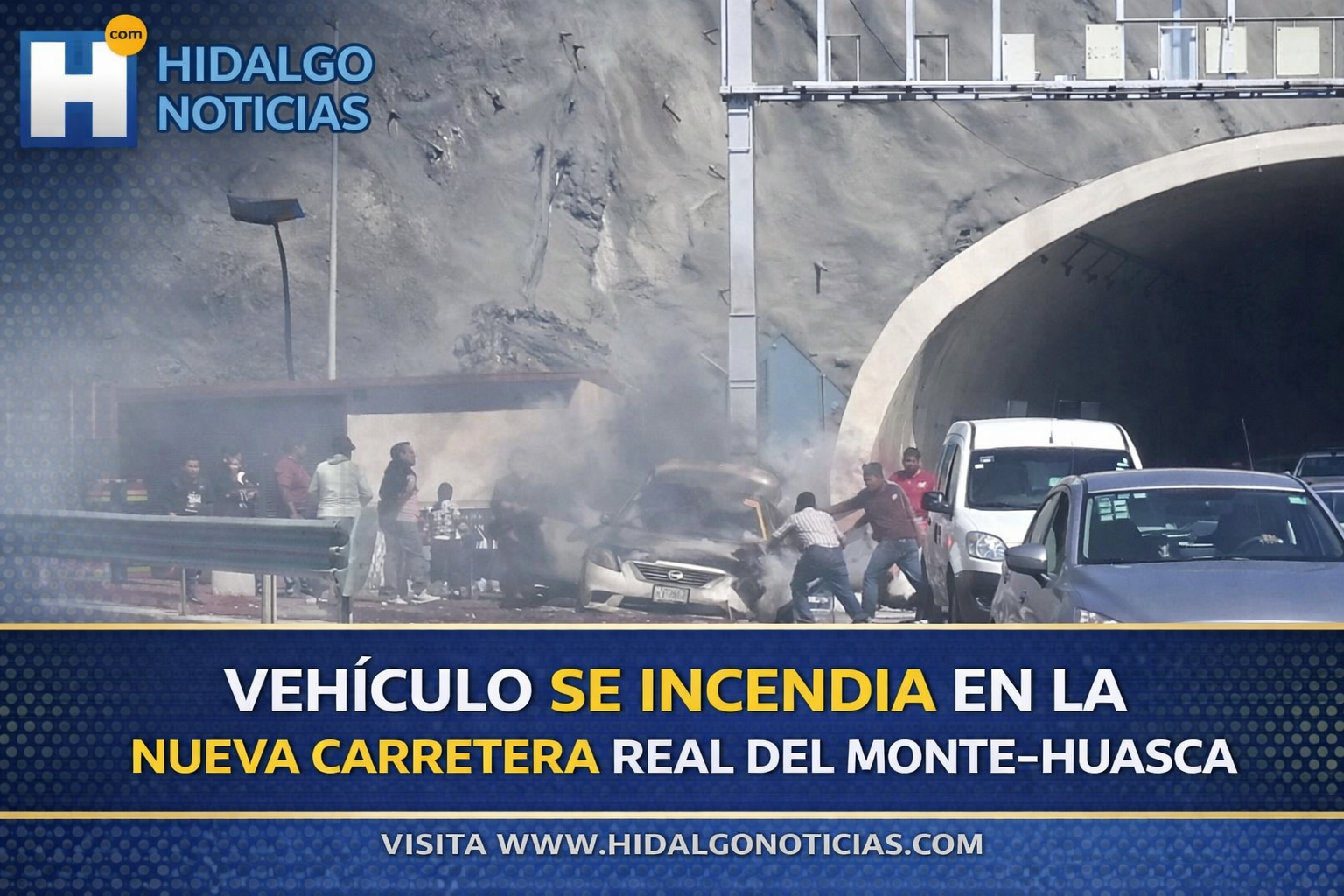 Mineral del Monte, Hidalgo, enero de 2026. Un vehículo particular se incendió mientras circulaba por la nueva carretera Real del Monte–Huasca, presuntamente a causa de un sobrecalentamiento, lo que generó momentos de tensión entre los automovilistas que transitaban por esta vía.