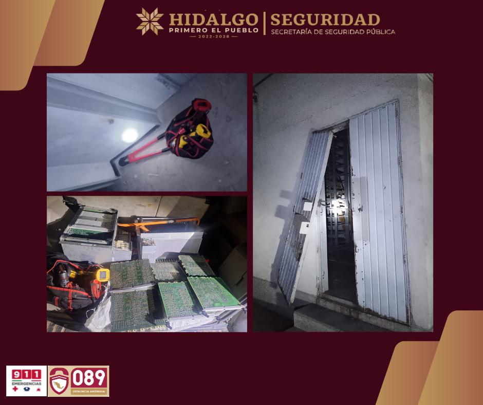Atitalaquia, Hidalgo, febrero de 2026.— Derivado de un reporte oportuno, elementos de la Secretaría de Seguridad Pública de Hidalgo lograron el aseguramiento de cuatro personas presuntamente vinculadas al robo de infraestructura de telecomunicaciones, tras ser sorprendidas al interior de una subestación de una empresa ubicada sobre la carretera Tula–Jorobas, a la altura del tramo Parque Industrial, en el municipio de Atitalaquia.