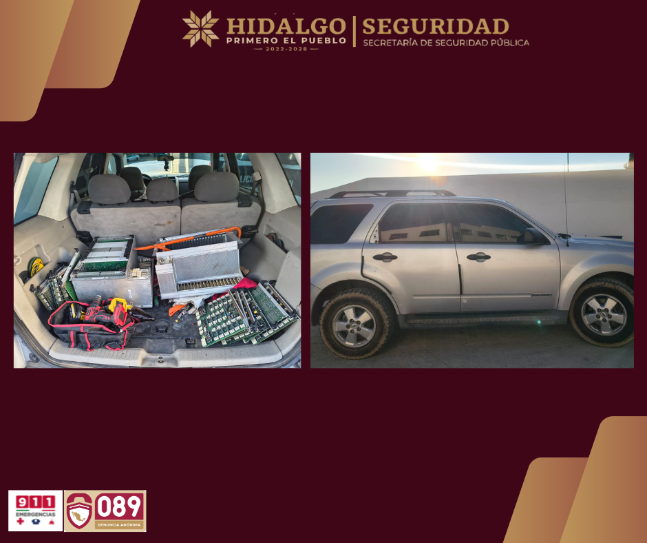 Como resultado del operativo, fueron asegurados cuatro sujetos: tres originarios del estado de Michoacán y uno más del estado de Veracruz, este último con antecedentes por el delito de robo agravado. Al realizar la inspección del vehículo, se localizaron 30 tarjetas tipo rack, equipo especializado de telecomunicaciones sustraído de la subestación, con un valor comercial preliminar estimado en alrededor de un millón de pesos.