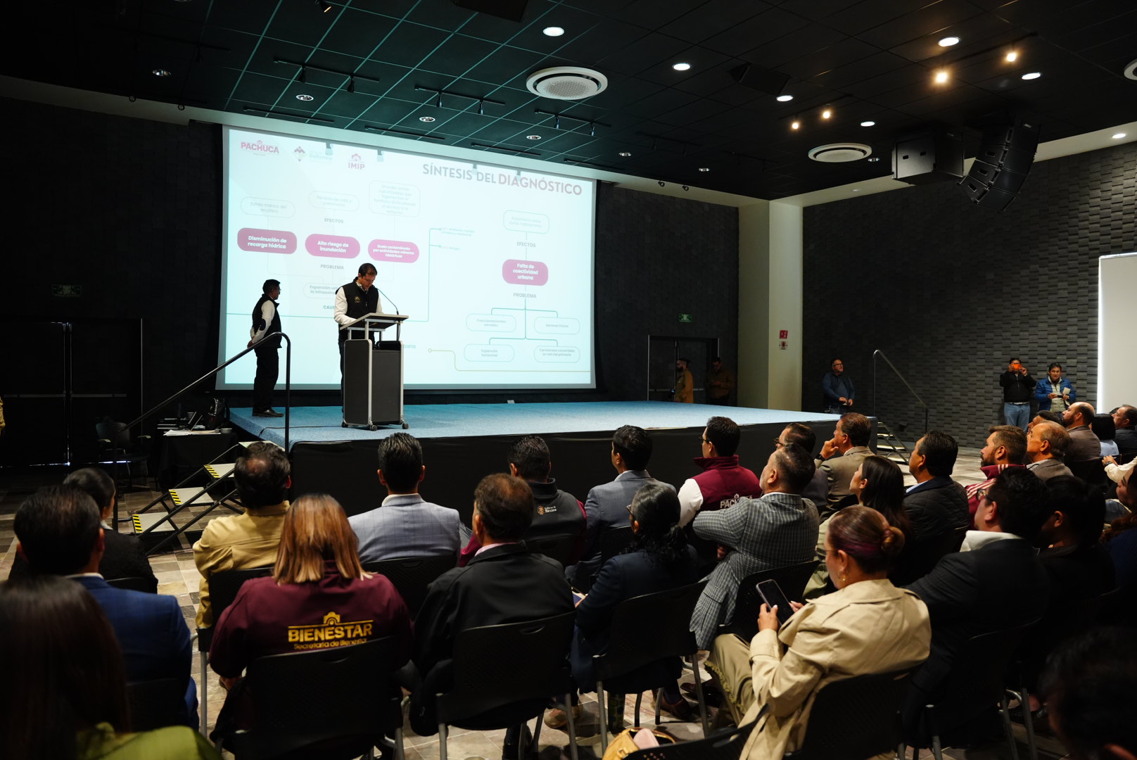 En la audiencia estuvieron presentes los presidentes municipales de Pachuca y Mineral de la Reforma, Jorge Reyes Hernández y Eduardo Medécigo Rubio, así como representantes académicos y autoridades estatales y federales vinculadas al desarrollo urbano.