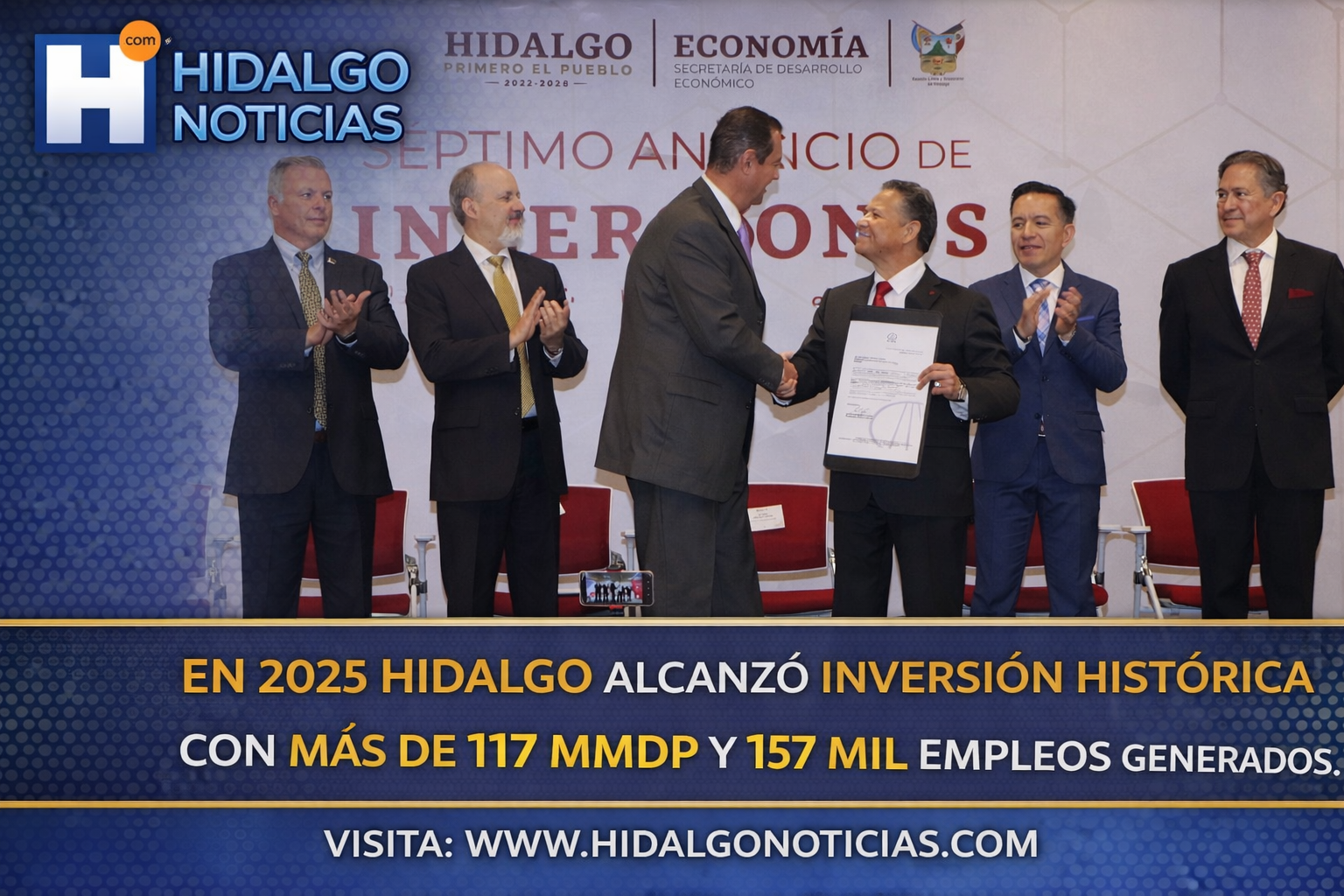 De acuerdo con los resultados presentados por la Secretaría de Desarrollo Económico de Hidalgo, durante 2025 se materializaron 104 proyectos de inversión privada que, en conjunto, representan un monto superior a los 117 mil millones de pesos y la generación de más de 157 mil empleos, tanto directos como indirectos, con impacto en 36 municipios del estado.