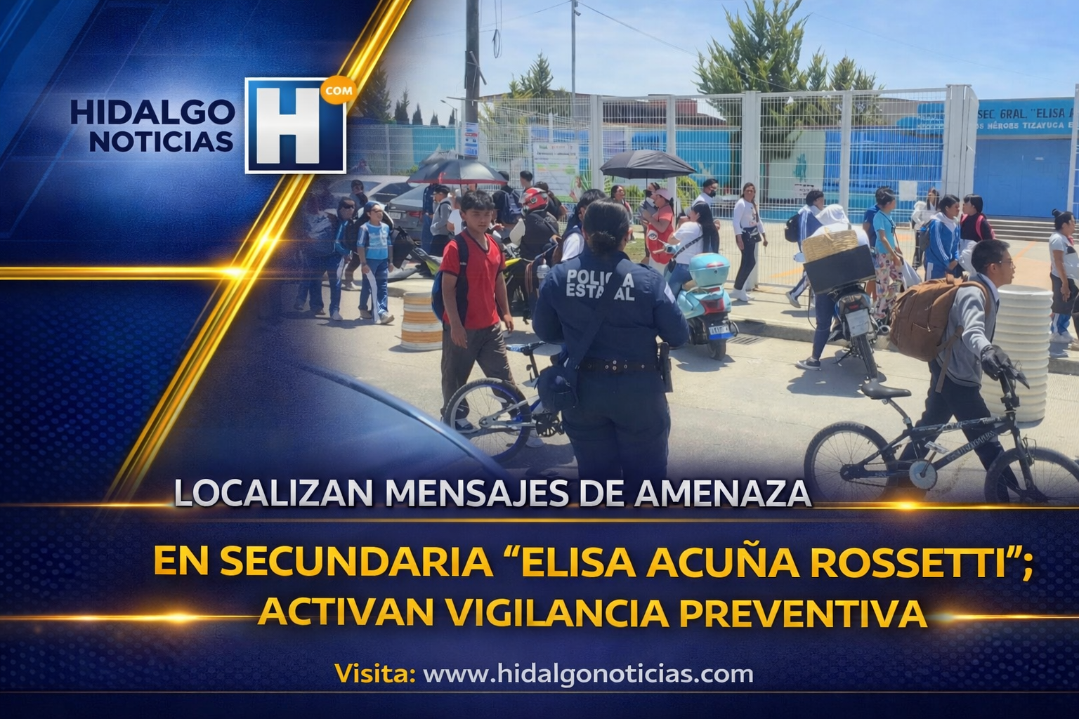 Hidalgo.— Autoridades implementaron medidas preventivas en la Escuela Secundaria General “Elisa Acuña Rossetti” luego de que fuera localizada una cartulina con mensajes de amenaza al interior de los baños de mujeres del plantel.