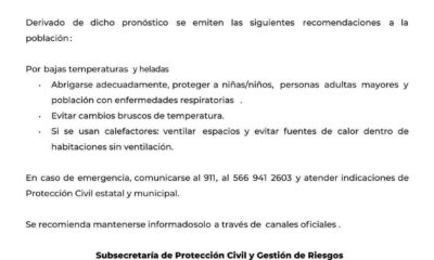 Se recomendó abrigarse adecuadamente, evitar exposiciones prolongadas al frío y reducir cambios drásticos de temperatura entre interiores y exteriores. Asimismo, se insistió en consultar información únicamente a través de canales oficiales para conocer la evolución del pronóstico.
