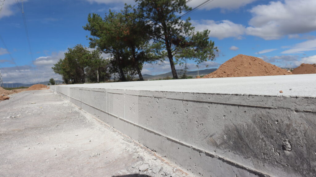 Para la superficie de rodamiento se empleó concreto MR-45 con un espesor de 30 centímetros, material diseñado para soportar el tránsito constante de vehículos pesados y ofrecer una vida útil estimada de aproximadamente 20 años. Este tipo de pavimentación responde a la alta carga vehicular que registra diariamente esta vialidad.