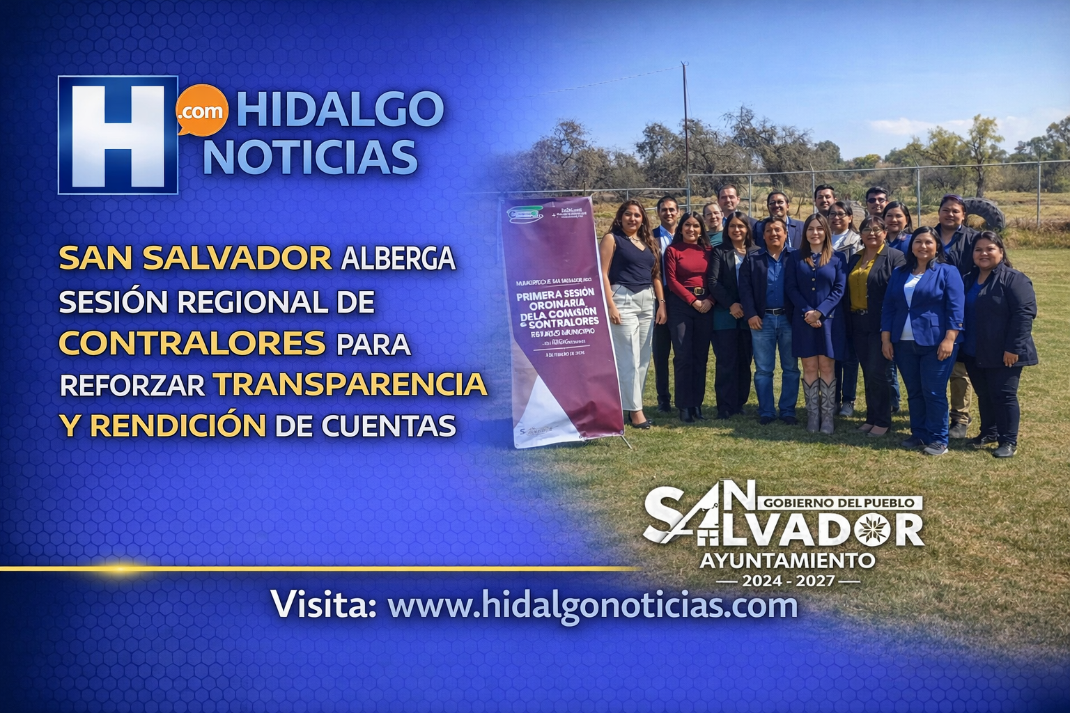 San Salvador, Hidalgo.– El municipio fue sede de la Primera Sesión Ordinaria de la Comisión Permanente de Contralores Estado–Municipio, Región I, encuentro que reunió a autoridades estatales y municipales con el propósito de fortalecer los mecanismos de supervisión, control interno y transparencia en la gestión pública.