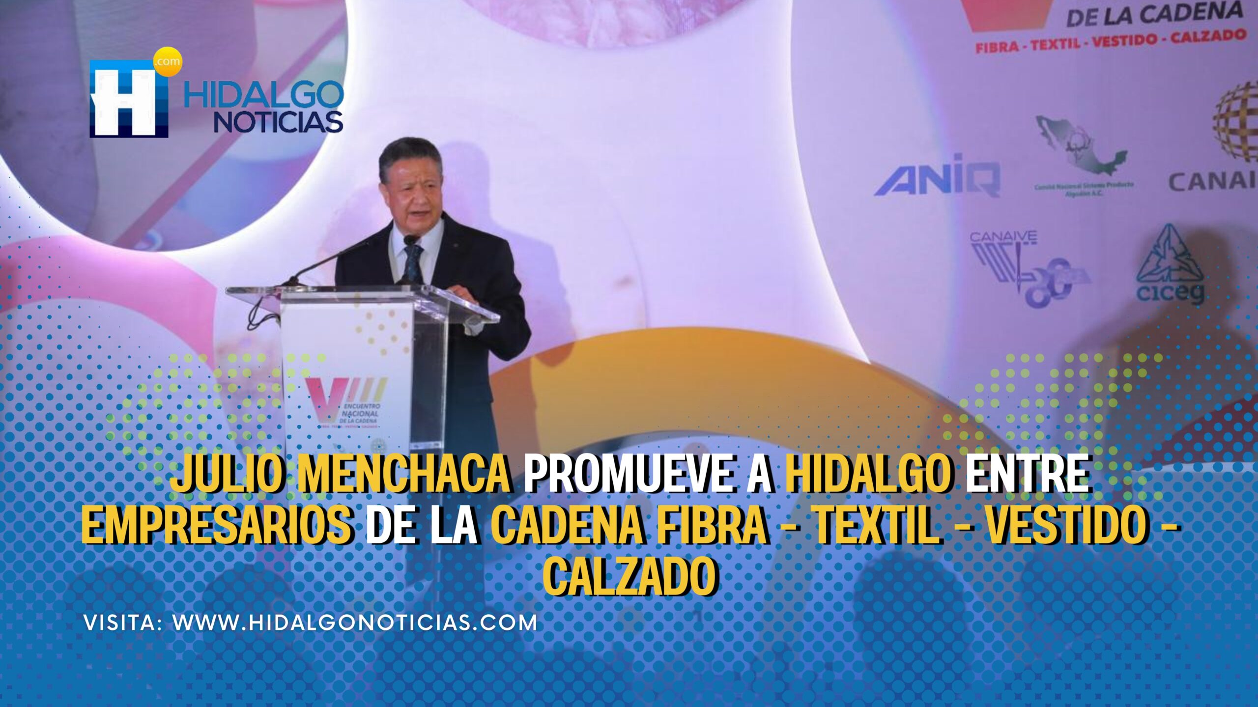 El gobernador de Hidalgo, Julio Menchaca, participó en el VIII Encuentro Nacional de la Cadena Fibra – Textil – Vestido – Calzado, reafirmando su compromiso de mantener una política de puertas abiertas que impulse el desarrollo económico del estado y apoye a las industrias clave que fortalecen la economía local.