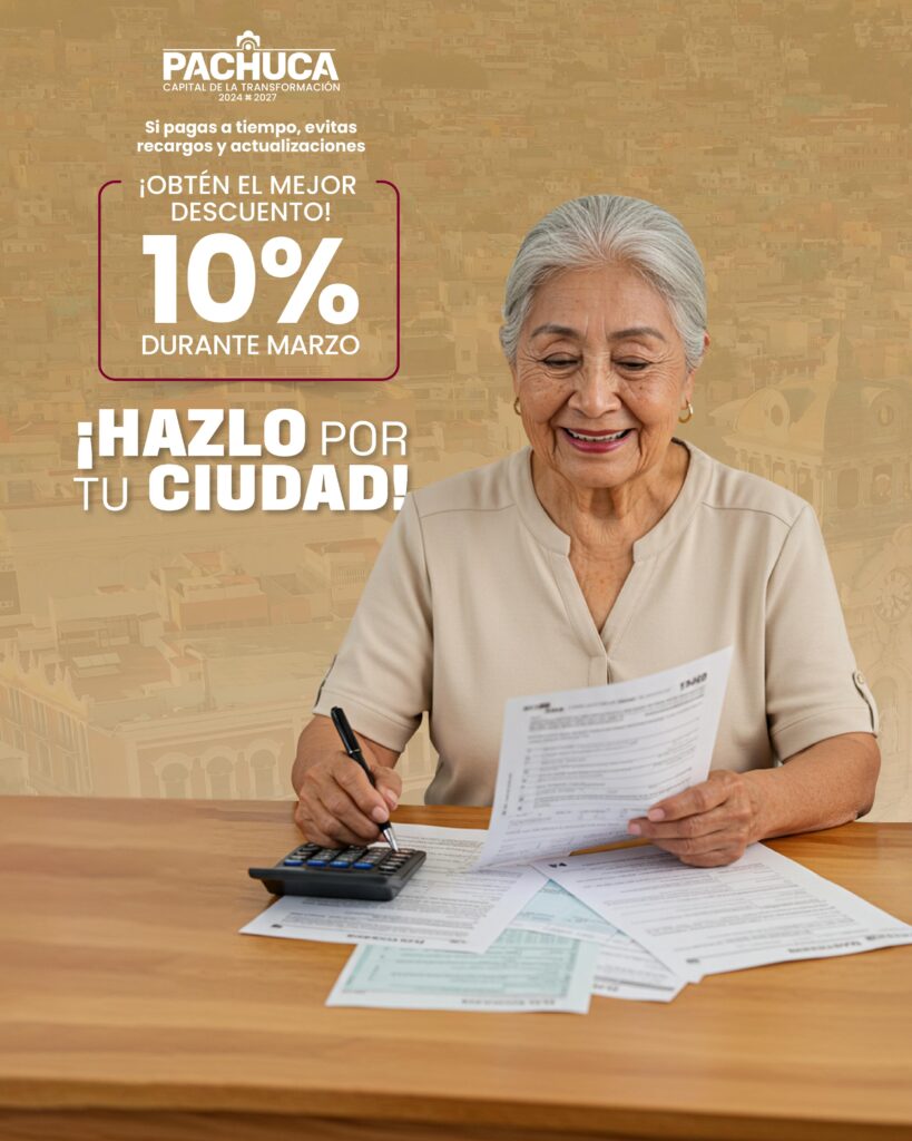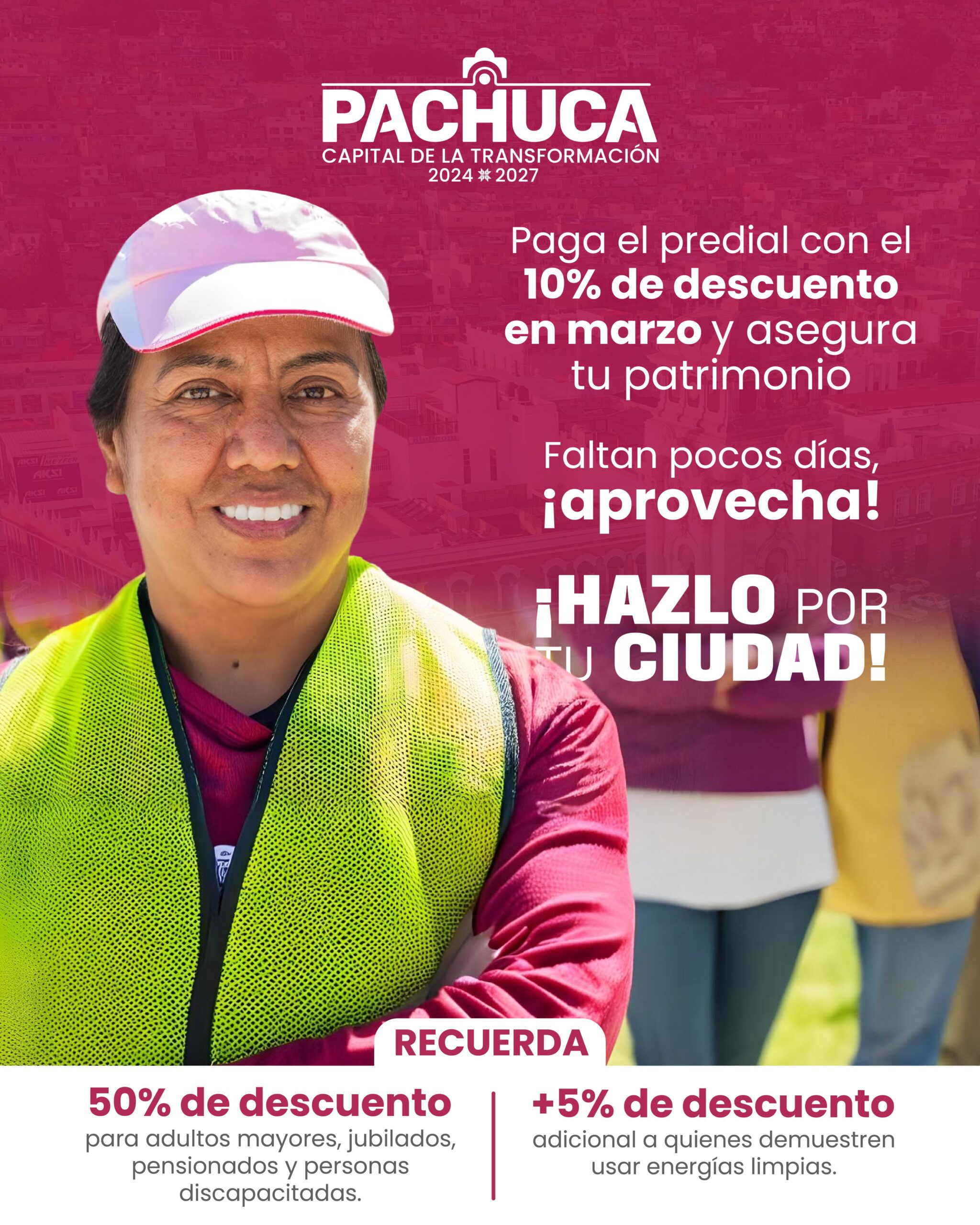 La Secretaría de la Tesorería del municipio de Pachuca hace un llamado a la ciudadanía para aprovechar los últimos días de marzo y realizar el pago del impuesto predial con un 10% de descuento. Esta oportunidad representa un incentivo para quienes deseen cumplir con su contribución de manera puntual y acceder a beneficios adicionales.