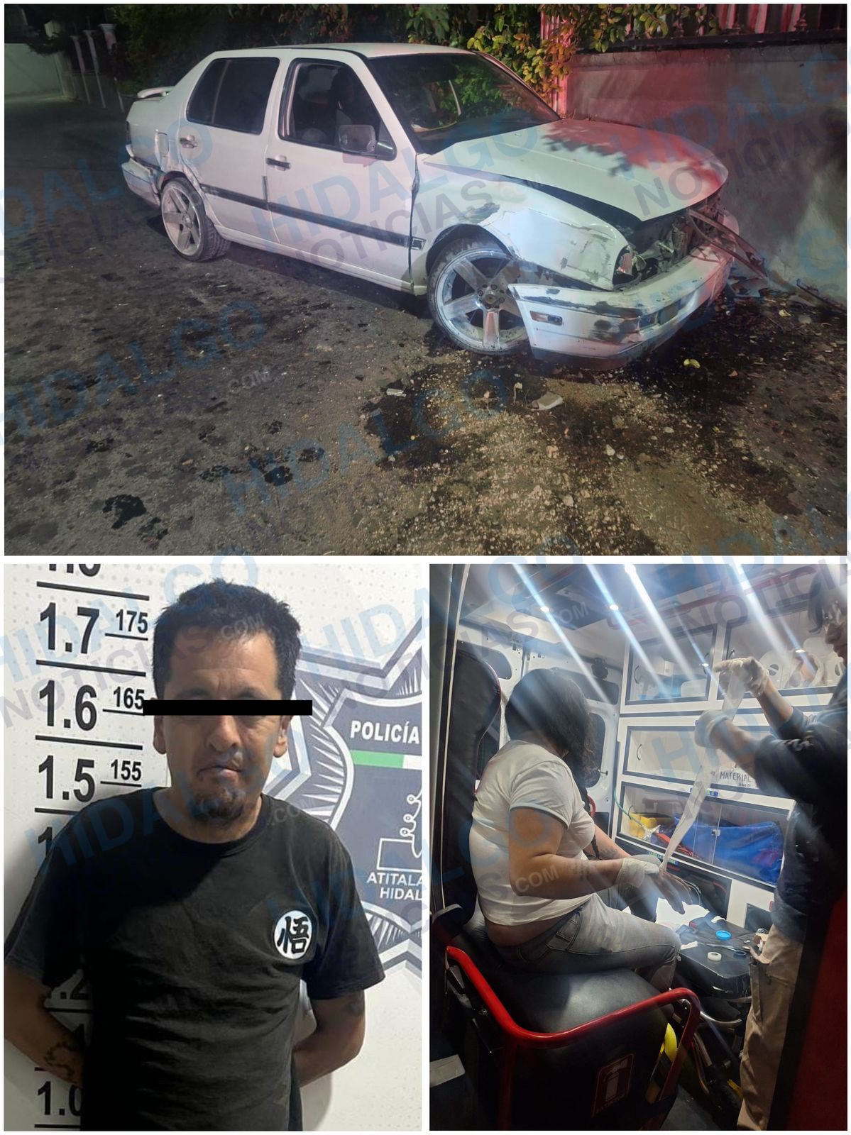 Conductor Ebrio Se Impacta Contra Barda En Atitalaquia; Una Mujer Resulta Lesionada