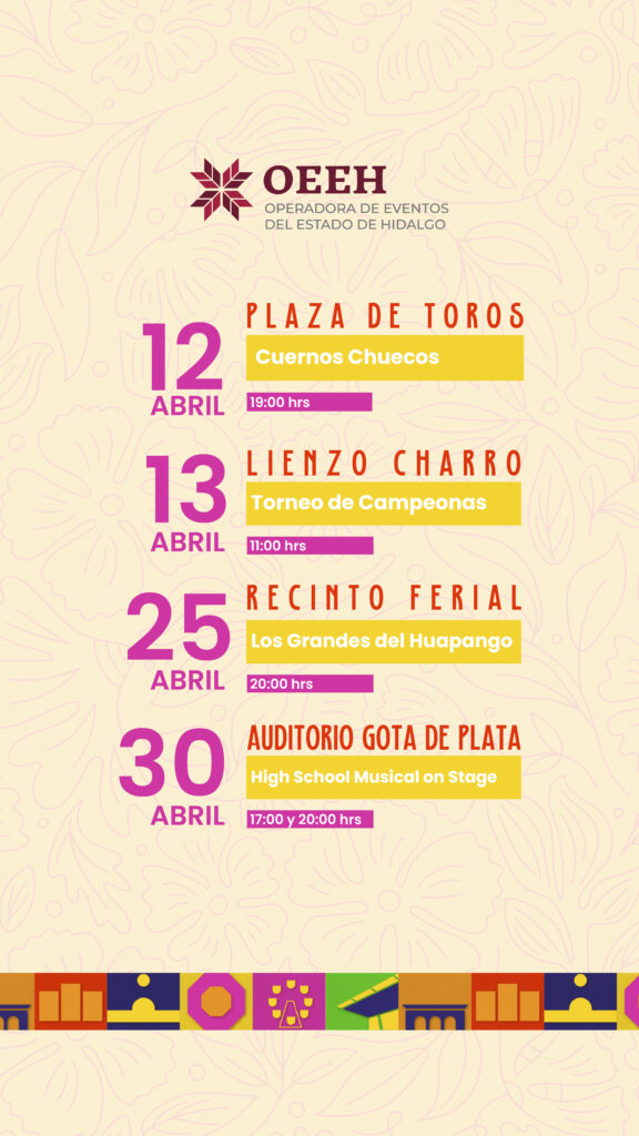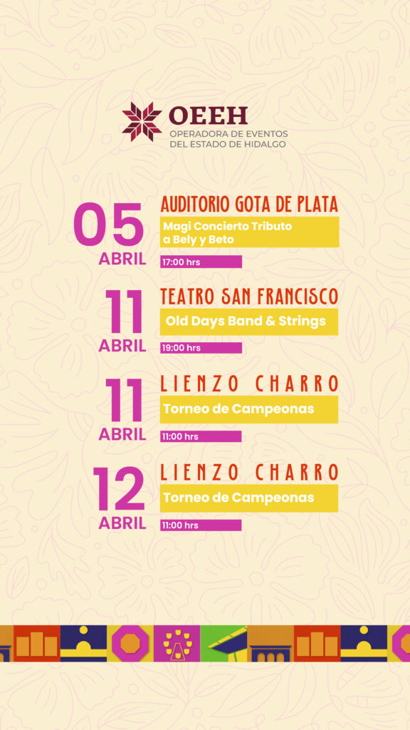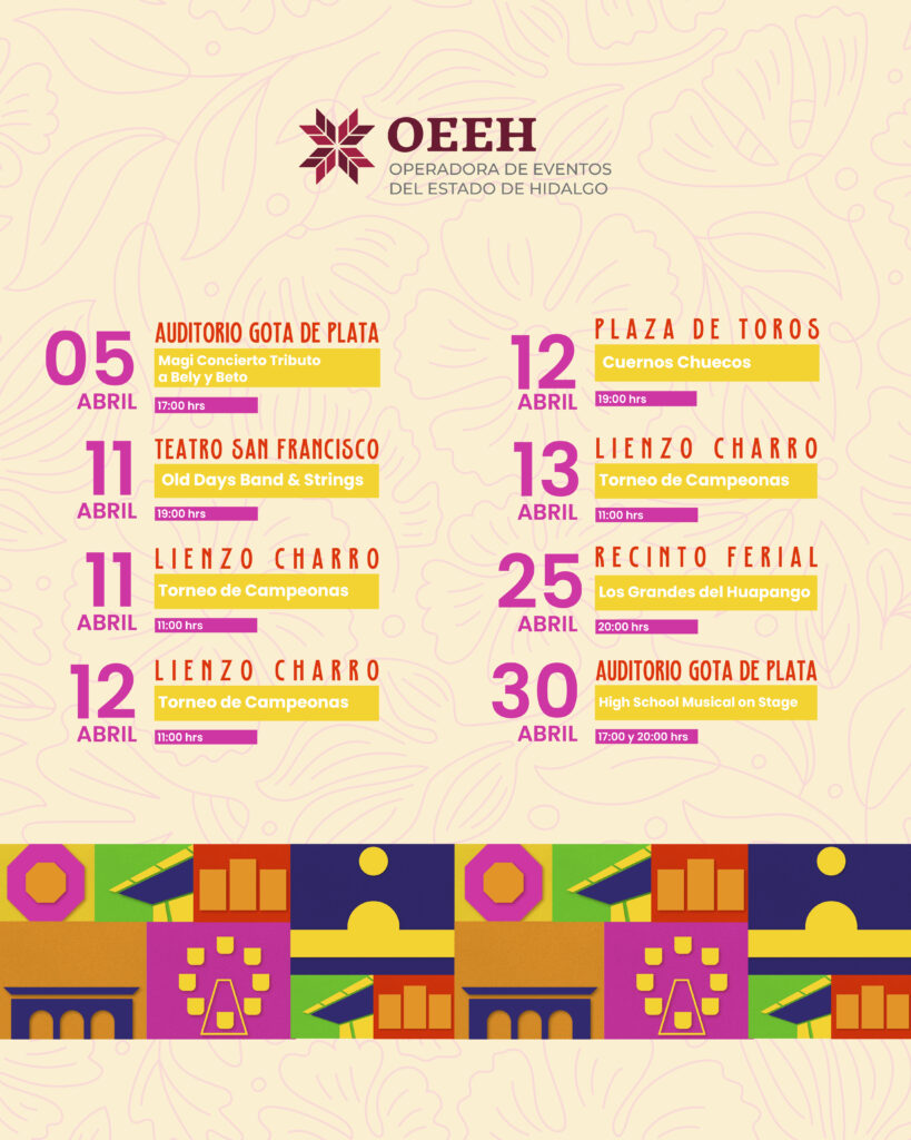 La Operadora de Eventos del Estado de Hidalgo (OEEH) anunció una atractiva cartelera de entretenimiento para este mes de abril, con actividades que abarcan desde espectáculos infantiles y música en vivo, hasta rodeo profesional y tradición charra, pensadas para todos los públicos.