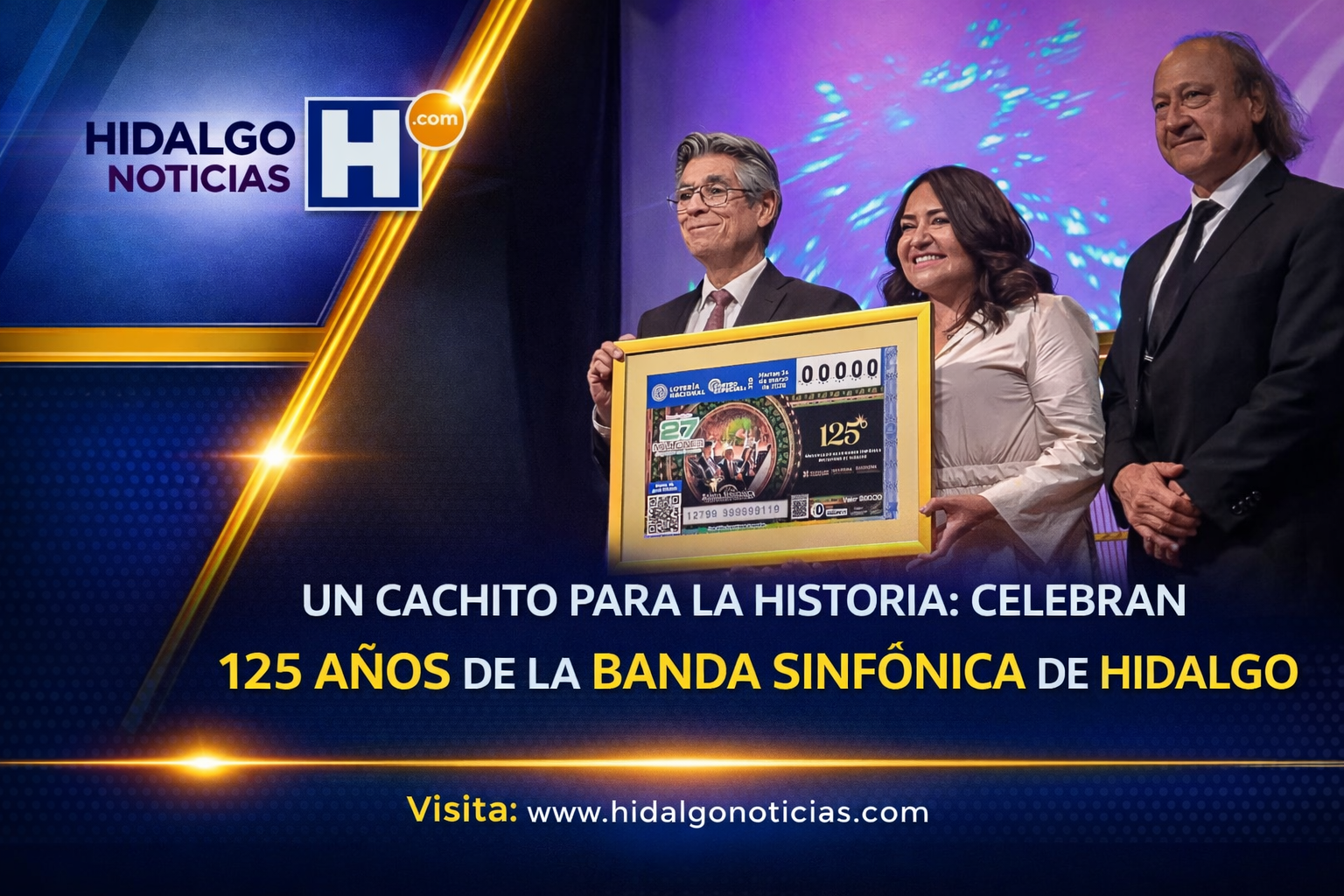 Lotería Nacional conmemoró los 125 años de la Banda Sinfónica del Estado de Hidalgo con un sorteo especial que reconoció su trayectoria y aportación cultural.