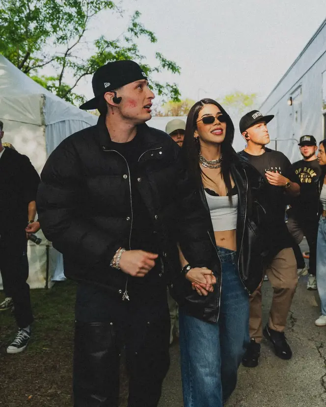 Kenia OS, originaria de Mazatlán, Sinaloa, fue vista acompañando a Peso Pluma entre bastidores y también al finalizar su show, cuando ambos se retiraron juntos del recinto a bordo de un carrito de golf. Aún era visible la marca de lápiz labial en el rostro del cantante, lo que reforzó el tono íntimo del momento.