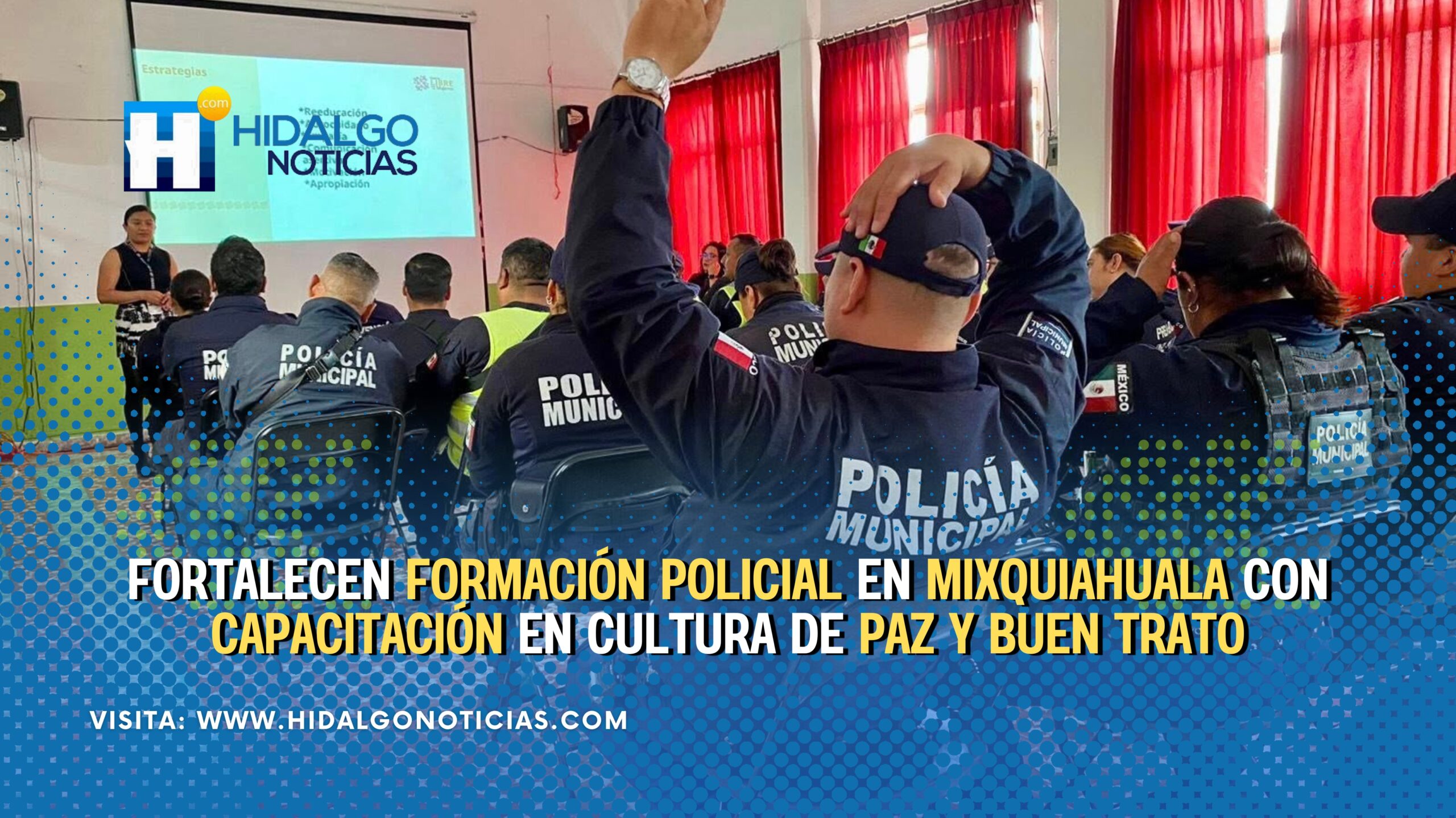 Mixquiahuala, Hgo., 5 de julio de 2025.— Para fortalecer la calidad en la atención a la ciudadanía y fomentar relaciones institucionales basadas en el respeto, elementos de la Dirección de Seguridad Pública y Tránsito Municipal de Mixquiahuala recibieron una capacitación enfocada en la “Cultura de la Paz y Buen Trato”.